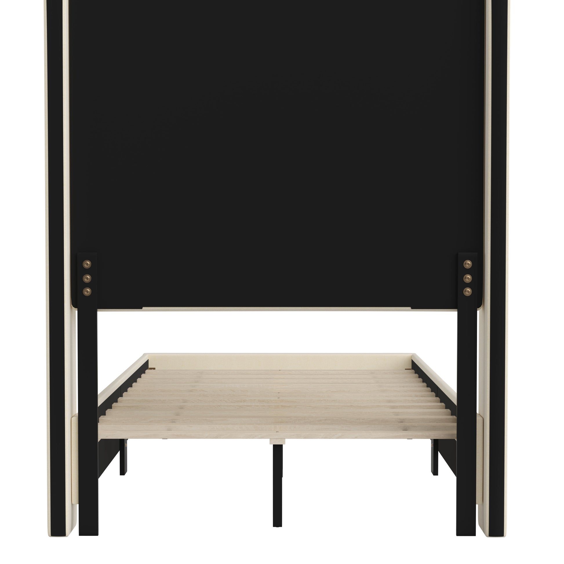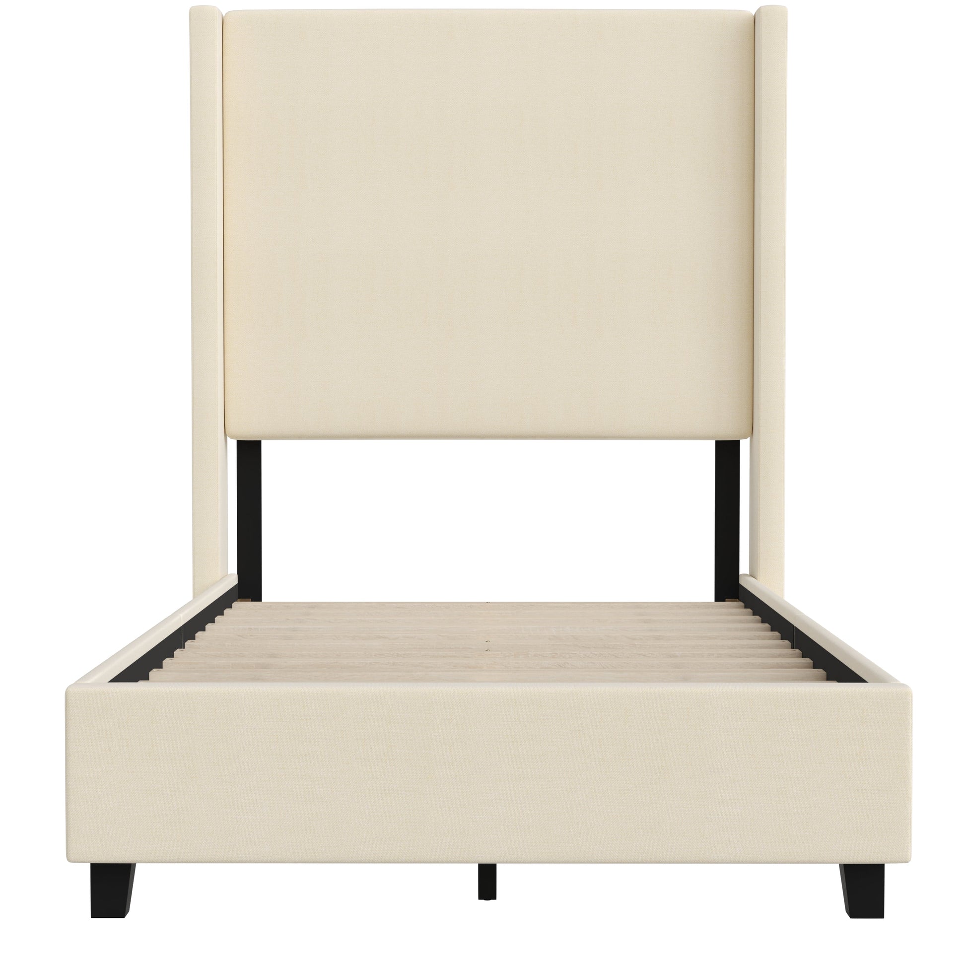 Quinn Twin Upholstered Platform Bed with Channel Stitched Wingback Headboard, Mattress Foundation with Slatted Supports, No Box Spring Needed, Beige Dimensions: 47"W x 76"D x 57"H