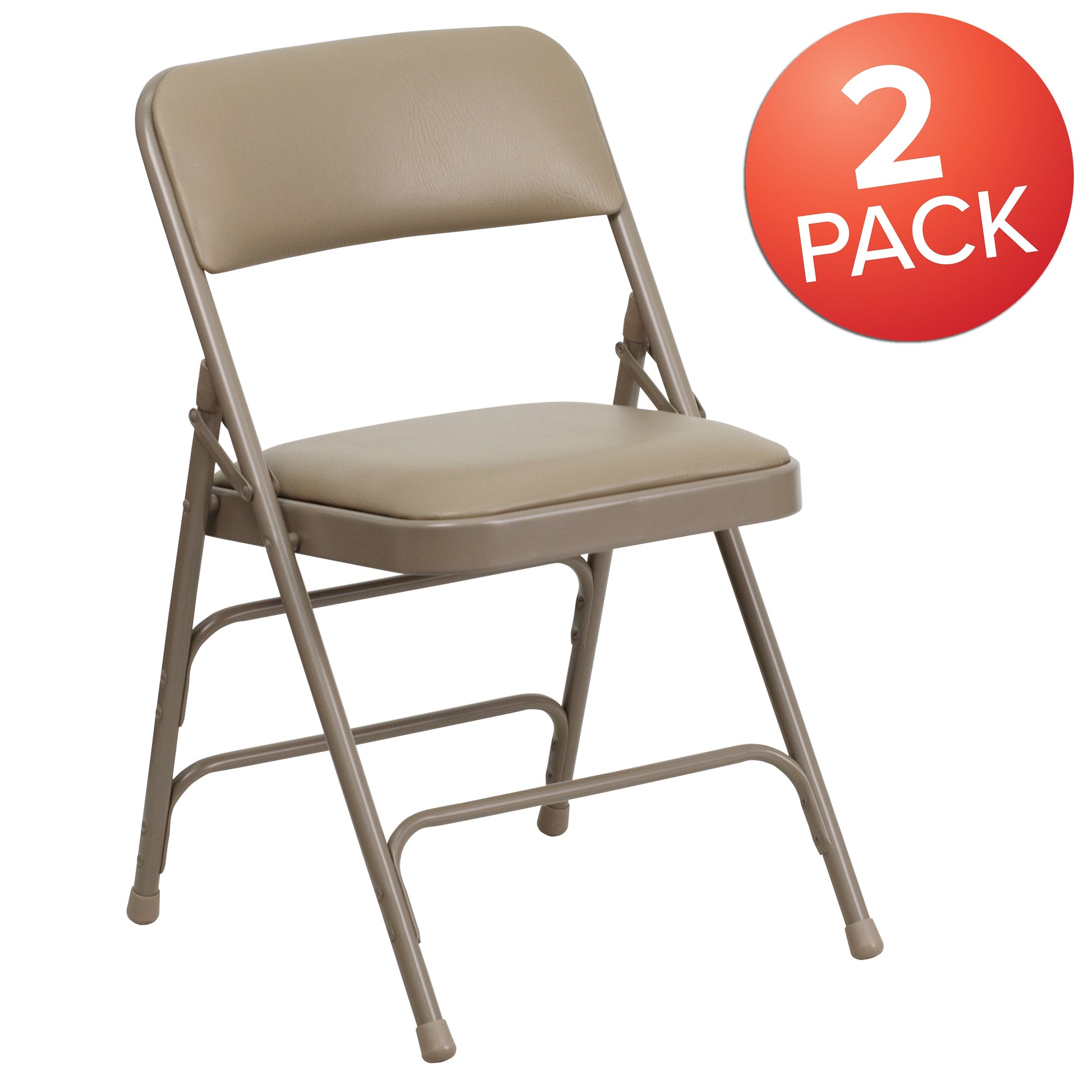 2 Pack HERCULES Series Curved Triple Braced & Double Hinged Beige Vinyl Metal Folding Chair Dimensions: 18.5"W x 19"D x 30"H