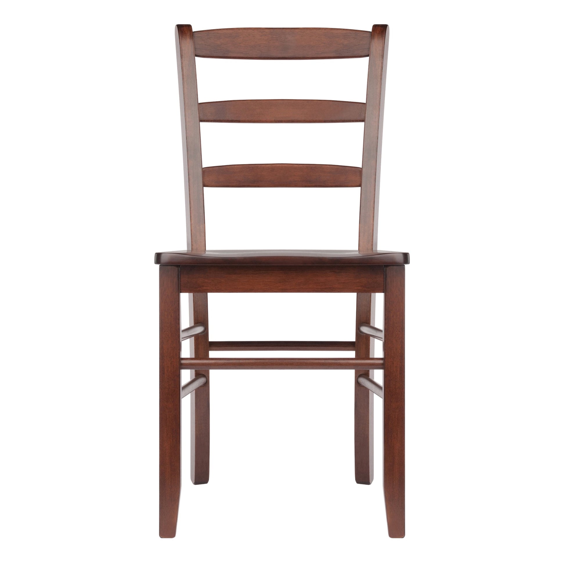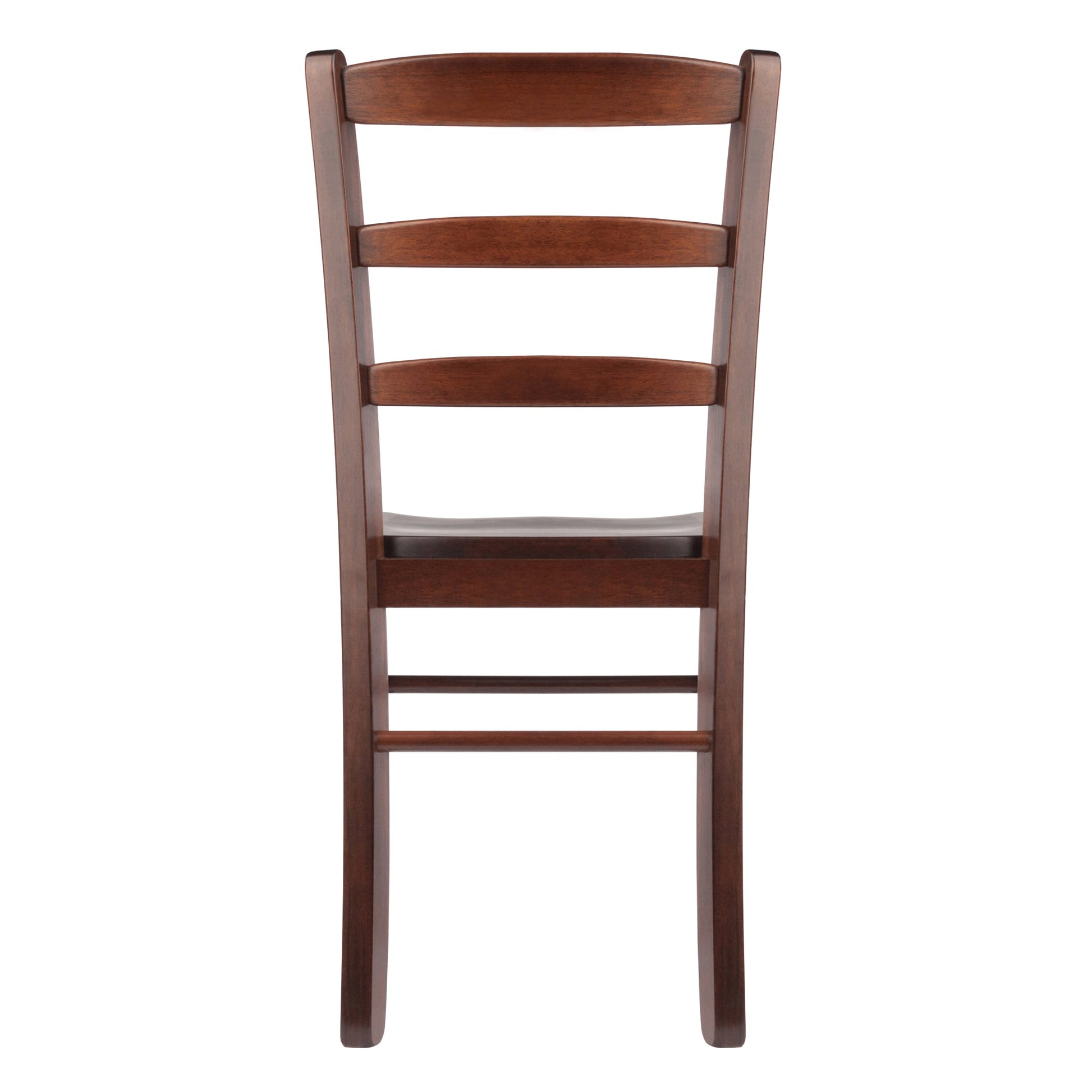 Instantly enhance the look of almost any room with these Winsome Wood Benjamin Ladder-back Chairs. These versatile pieces feature a classic style that can be incorporated effortlessly into nearly any existing decor. These comfortable chairs have a striking, ladder-back design that's ideal for any decor style, from rustic to modern. Featuring a sturdy, solid wood construction with a beautiful, walnut finish that adds instant warmth to any dining room and table. Offer a broad seat sitting at 17.97”H with a contouring seat back and wide set legs that lend tip free support. Their height is proportioned to match up with a standard size dining table. Use as a set or split and set at your convenience. Complete your chair set with a dining table designed by Winsome Wood in the same finish for a more unified space (each sold separately). This set of two is conveniently packed and shipped in 1 box, that includes the hardware necessary for assembling. Replacement part request can be submitted directly to the manufacturer within 60 days from date of purchase.Dimensions : 16.6 in. Wide 20.5 in. Deep 34.7 in. High