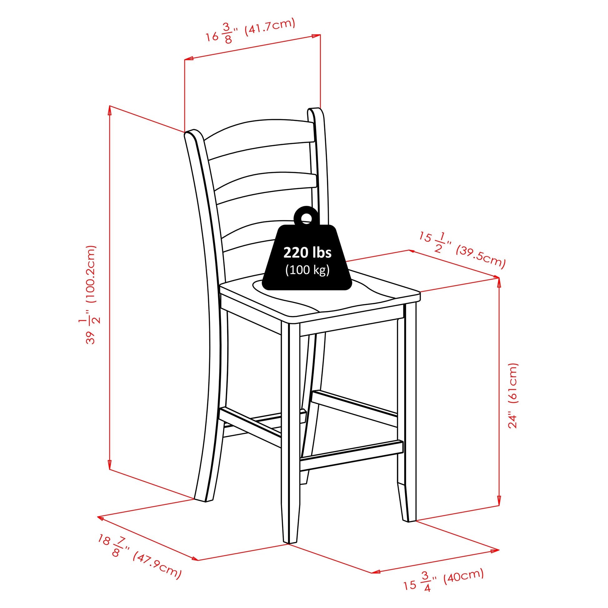 Instantly enhance the look of almost any room with these Winsome Wood Benjamin Ladder-Back Counter Stools. These versatile pieces feature a classic style that can be incorporated effortlessly into nearly any existing decor. These comfortable stools have a striking, ladder-back design that's ideal for any decor style, from rustic to modern. Featuring a sturdy, solid wood construction with a beautiful, walnut finish that adds instant warmth to any table or counter. Offer a broad seat sitting at 24.02”H with a contouring seat back and wide set legs that lend tip free support. Their height is proportioned to match up with a high pub table. Like many Winsome stools, these counter stools are also available in bar height for those that need or prefer higher height stools. This set of two is conveniently packed and shipped in 1 box, that includes the hardware necessary for assembling. Replacement part request can be submitted directly to the manufacturer within 60 days from date of purchase.
