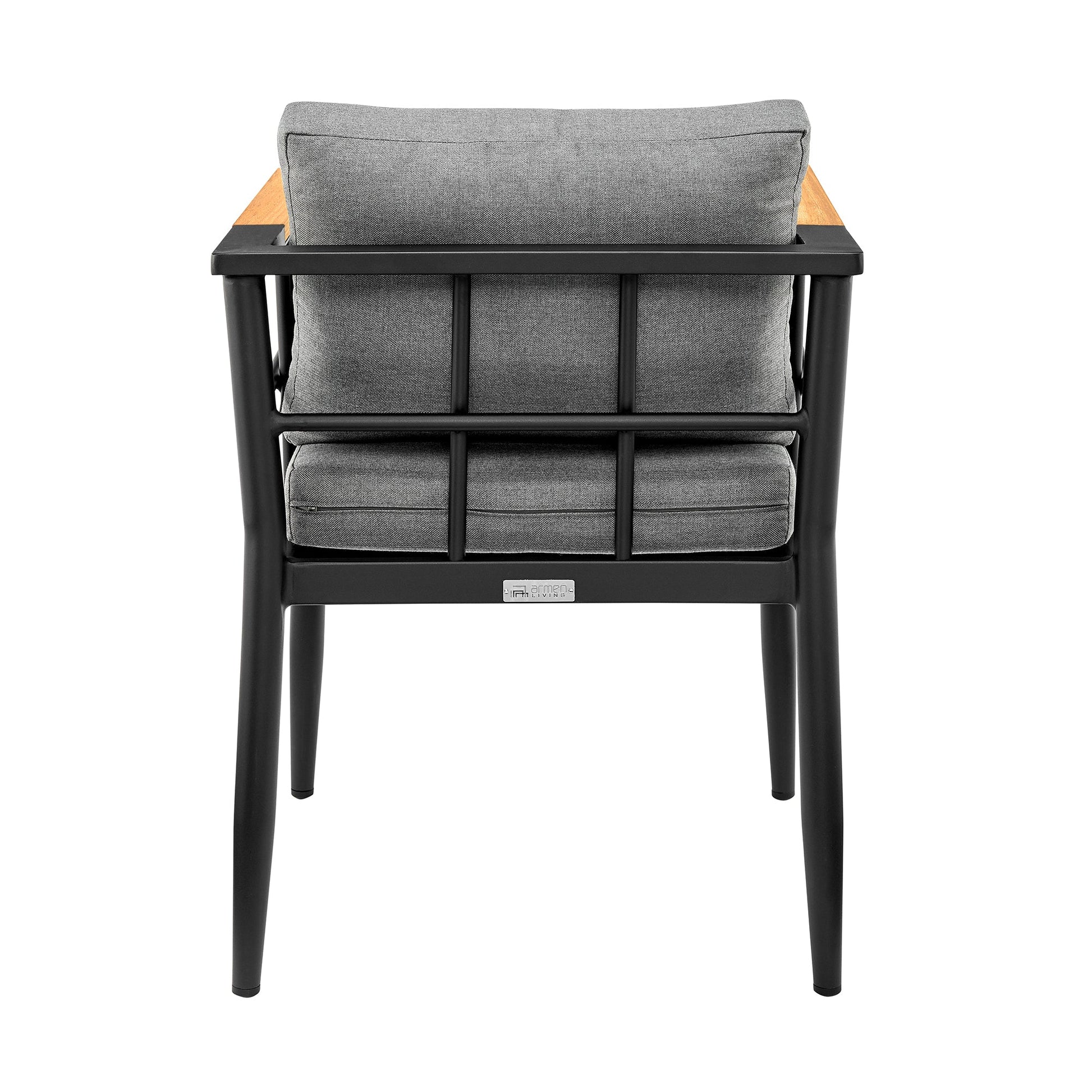 Beowulf Outdoor Patio Dining Chair in Aluminum and Teak with Gray Cushions – Set of 2