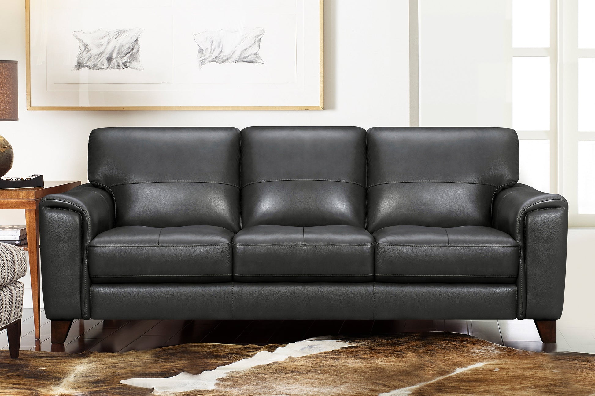 Bergen 87" Pewter Genuine Leather Square Arm Sofa