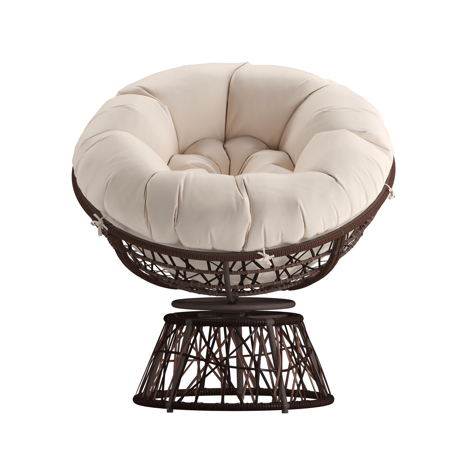 Bowie Comfort Series Brown Swivel Patio Chair with Beige Cushion Dimensions: 38"W x 32"D x 35.5"H