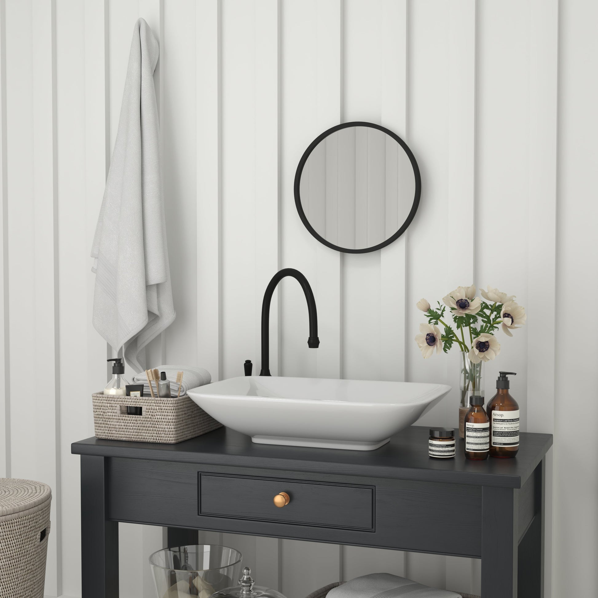 Julianne 16" Round Black Metal Framed Wall Mirror - Large Accent Mirror for Bathroom, Vanity, Entryway, Dining Room, & Living Room Dimensions: 16"W x 0.78"D x 16"H