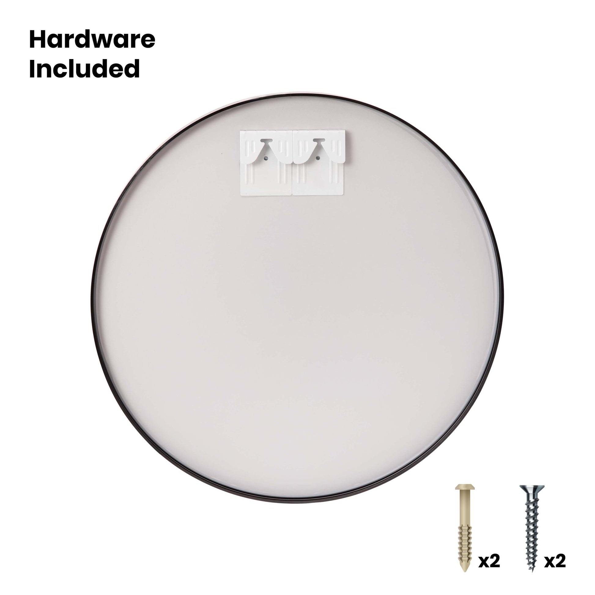 Julianne 20" Round Black Metal Framed Wall Mirror - Large Accent Mirror for Bathroom, Vanity, Entryway, Dining Room, & Living Room Dimensions: 20"W x 1.125"D x 20"H