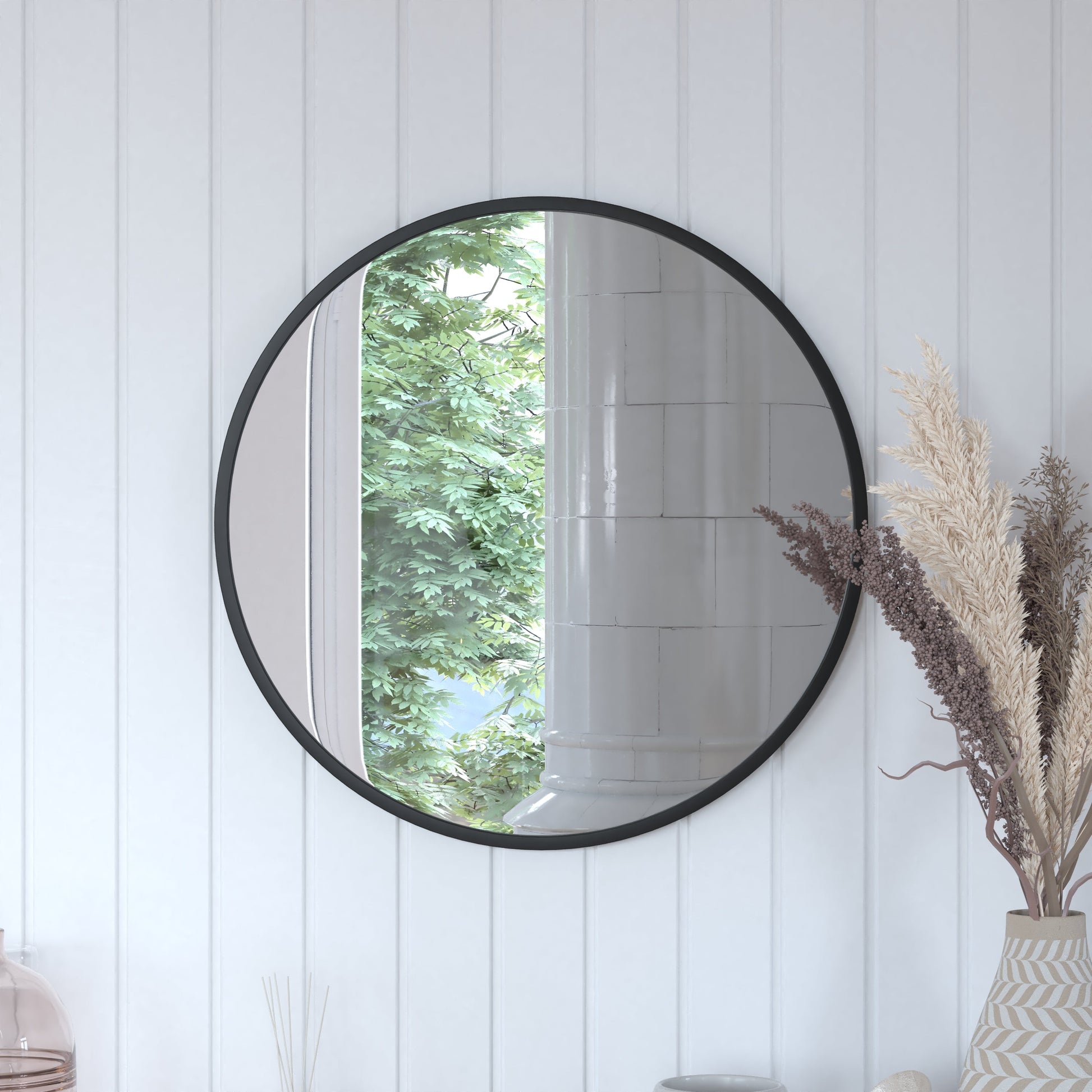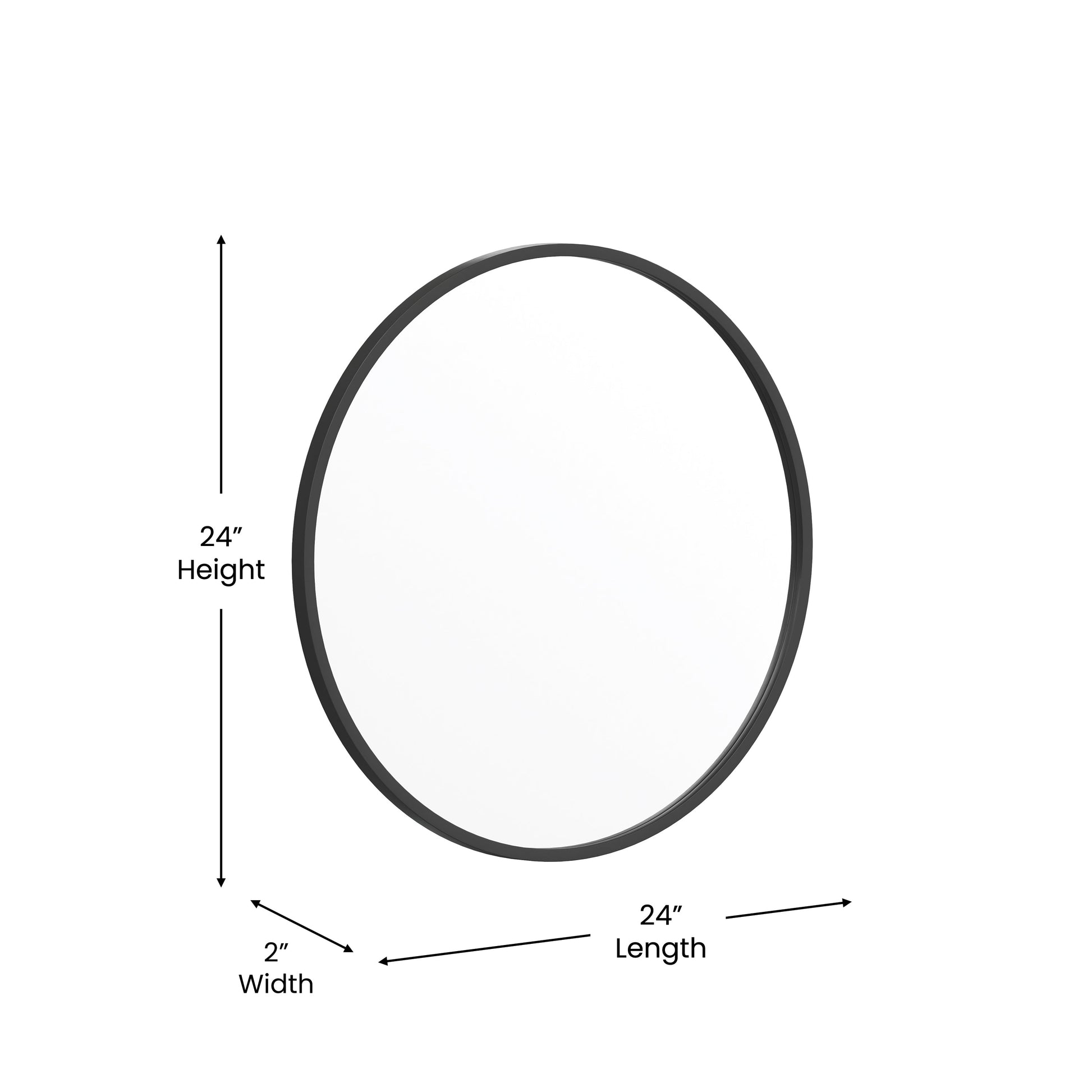 Julianne 24" Round Black Metal Framed Wall Mirror - Large Accent Mirror for Bathroom, Vanity, Entryway, Dining Room, & Living Room Dimensions: 24"W x 0.78"D x 24"H