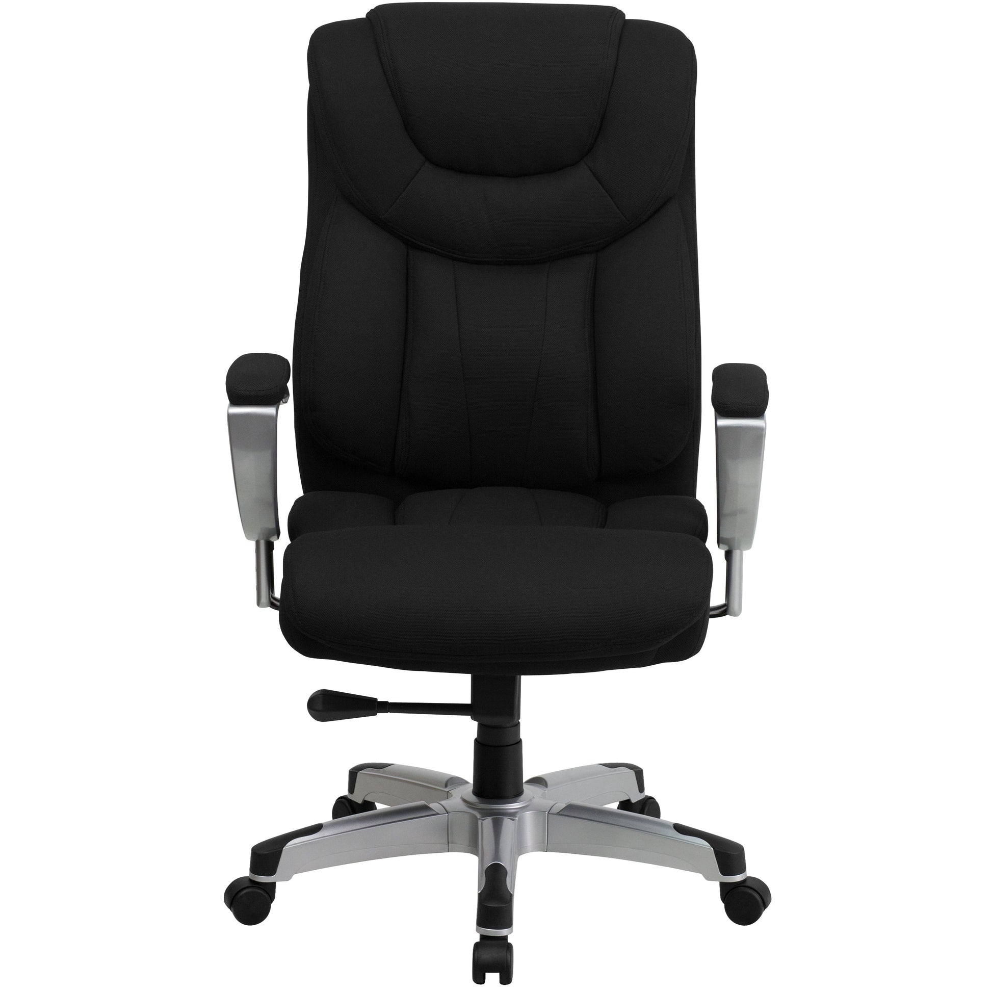 HERCULES Series Big & Tall 400 lb. Rated Black Fabric Executive Ergonomic Office Chair with Silver Adjustable Arms Dimensions: 30"W x 31"D x 45" - 48.5"H