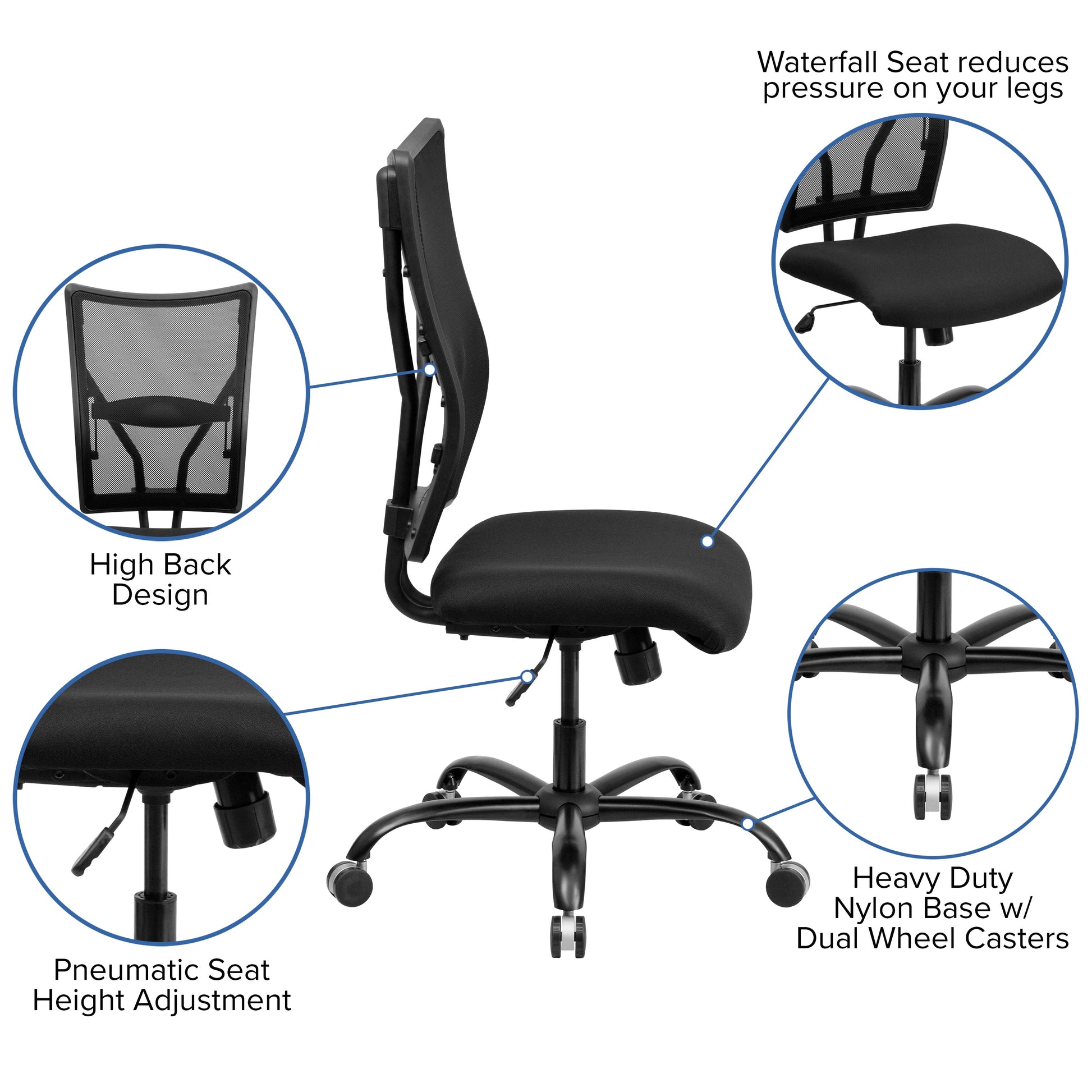 HERCULES Series Big & Tall 400 lb. Rated Black Mesh Executive Swivel Ergonomic Office Chair Dimensions: 27"W x 28.5"D x 41.25" - 44.75"H