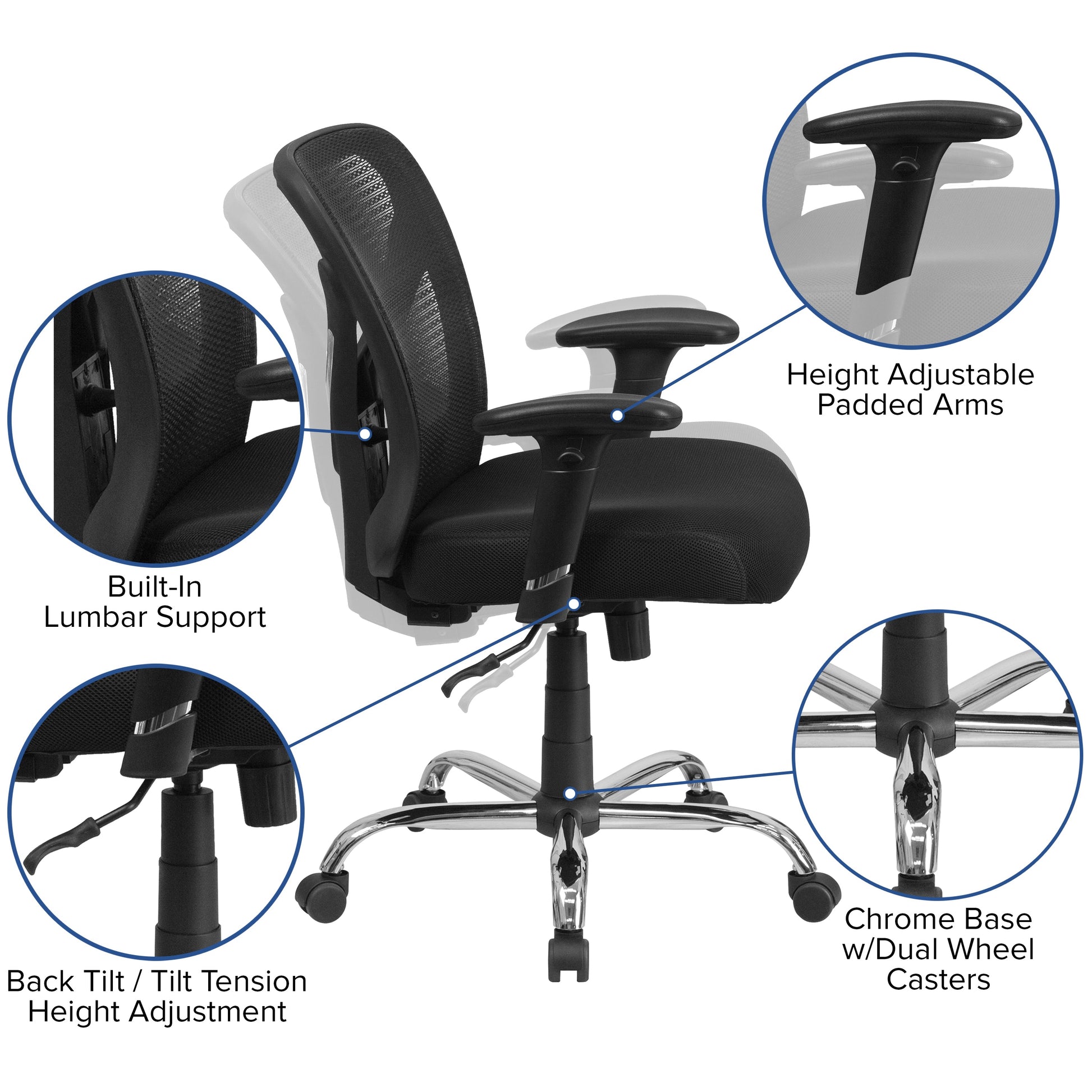 Big & Tall Office Chair | Adjustable Height Mesh Swivel Office Chair with Wheels Dimensions: 29"W x 26"D x 36" - 42.25"H