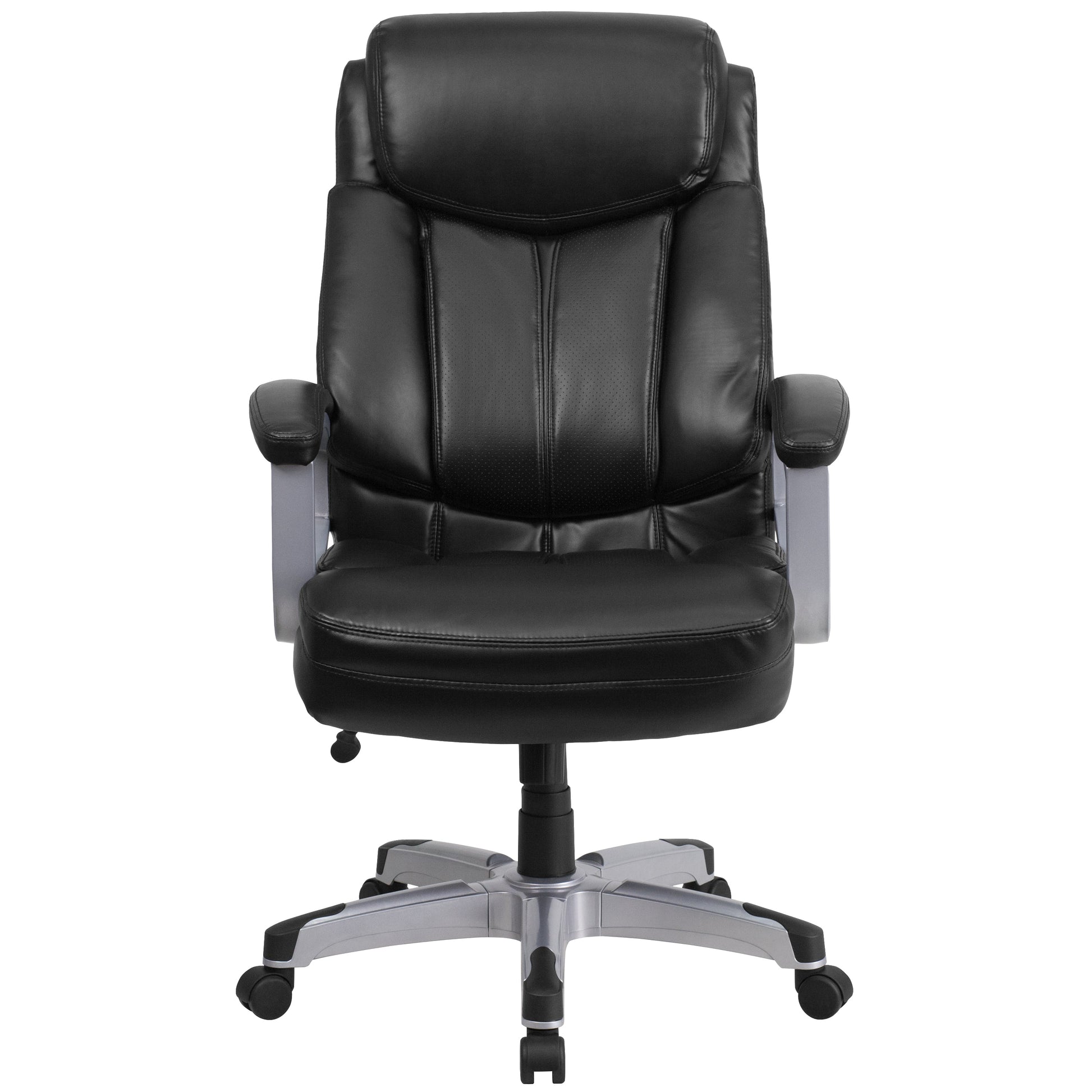 HERCULES Series Big & Tall 500 lb. Rated Black LeatherSoft Executive Swivel Ergonomic Office Chair with Arms Dimensions: 28.5"W x 35"D x 45" - 49.5"H
