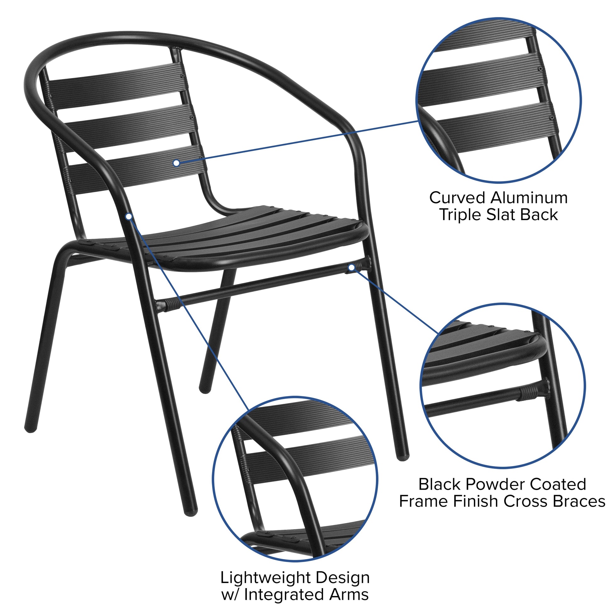 Lila Black Metal Restaurant Stack Chair with Aluminum Slats Dimensions: 21.5"W x 24"D x 28.5"H