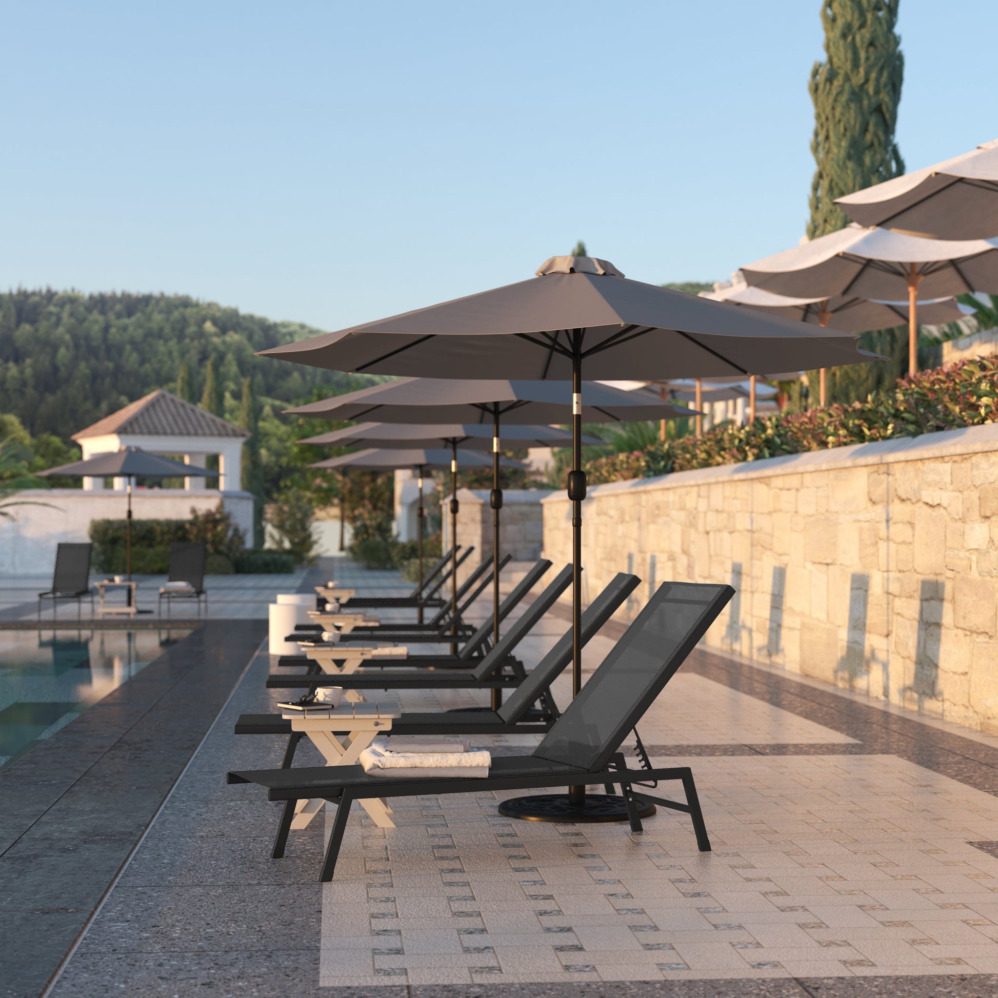 Brazos Adjustable Chaise Lounge Chair, Outdoor Five-Position Recliner, All Weather, Black/Black Dimensions: 23.25"W x 76"D x 19.75" - 38"H