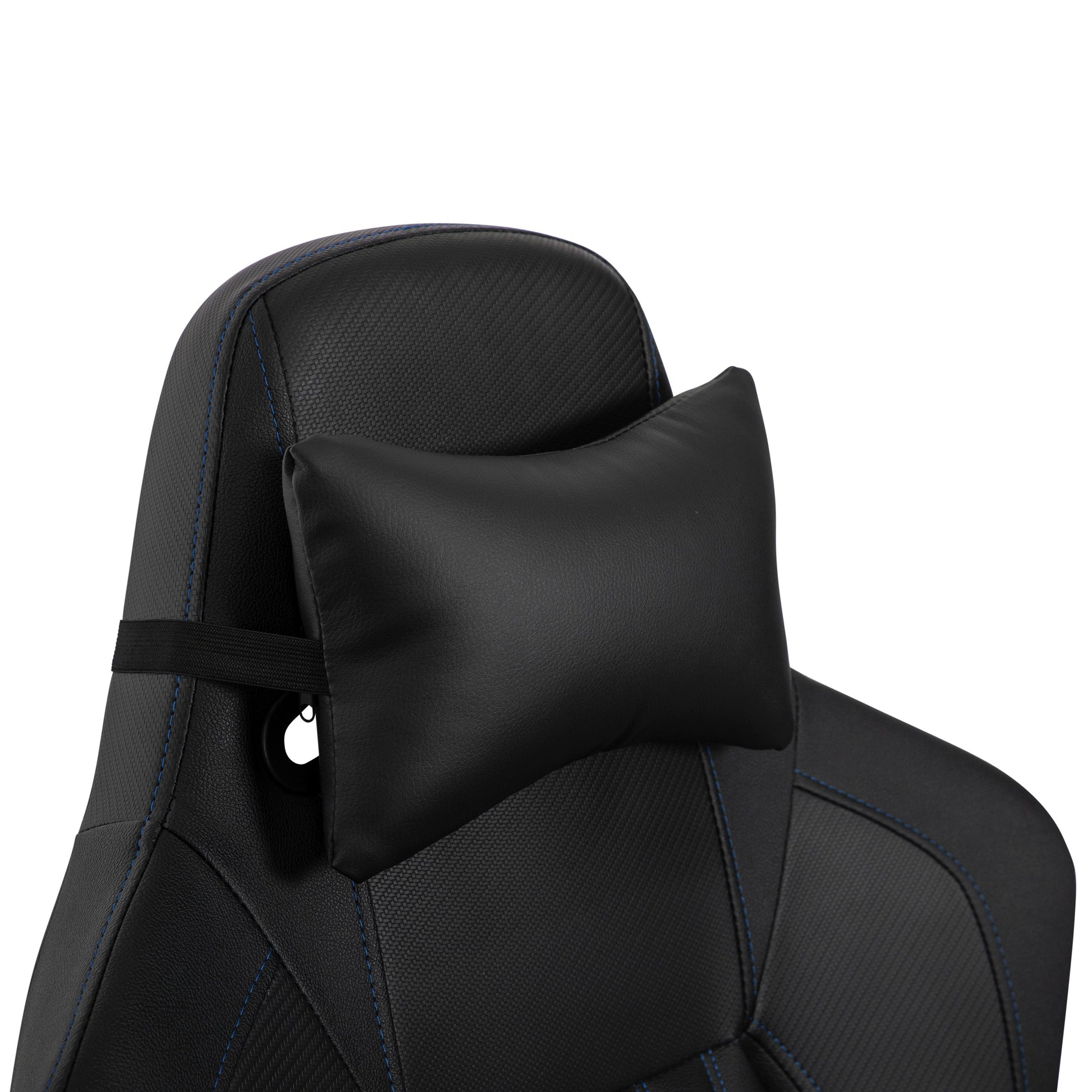 Falco Ergonomic High Back Adjustable Gaming Chair with 4D Armrests, Headrest Pillow, and Adjustable Lumbar Support, Black with Blue Stitching Dimensions: 28.75"W x 25.5" - 46.5"D x 48.75" - 51.25"H