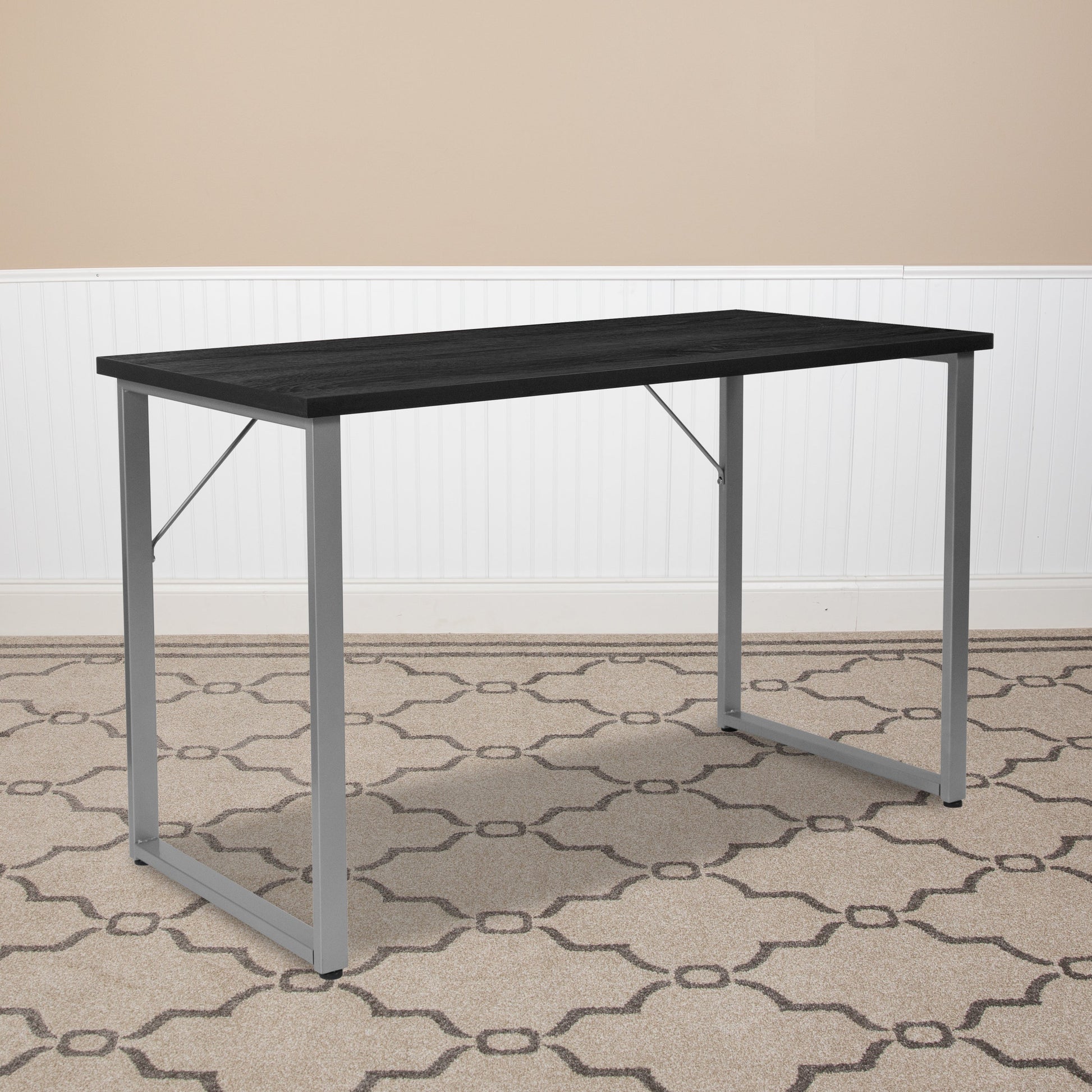 Harvey Black Finish Computer Desk with Silver Metal Frame Dimensions: 47.25"W x 23.5"D x 29.25"H