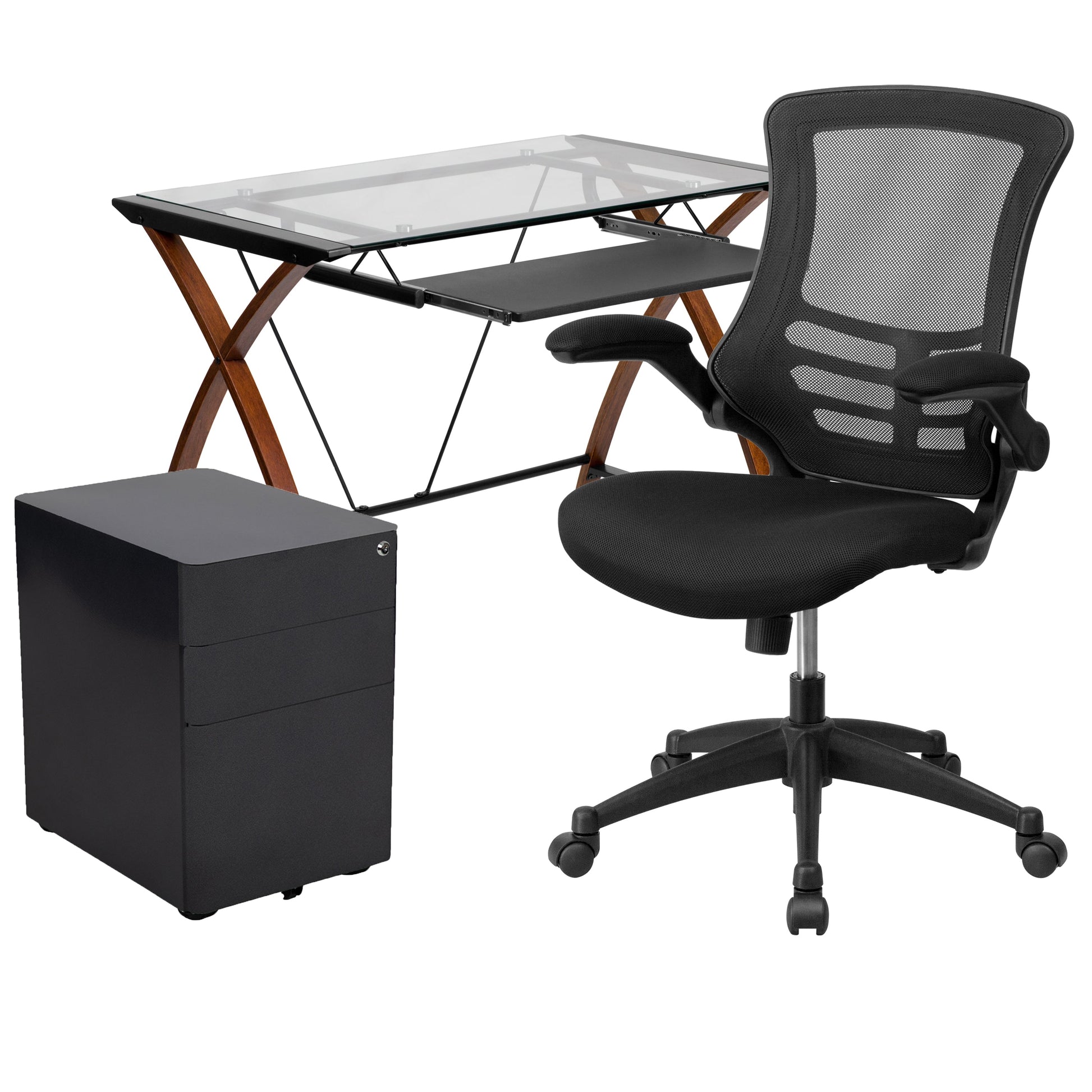 Stiles Work From Home Kit - Glass Desk with Keyboard Tray, Ergonomic Mesh Office Chair and Filing Cabinet with Lock & Side Handles Dimensions: 35.5"W x 23.75"D x 29.75"H