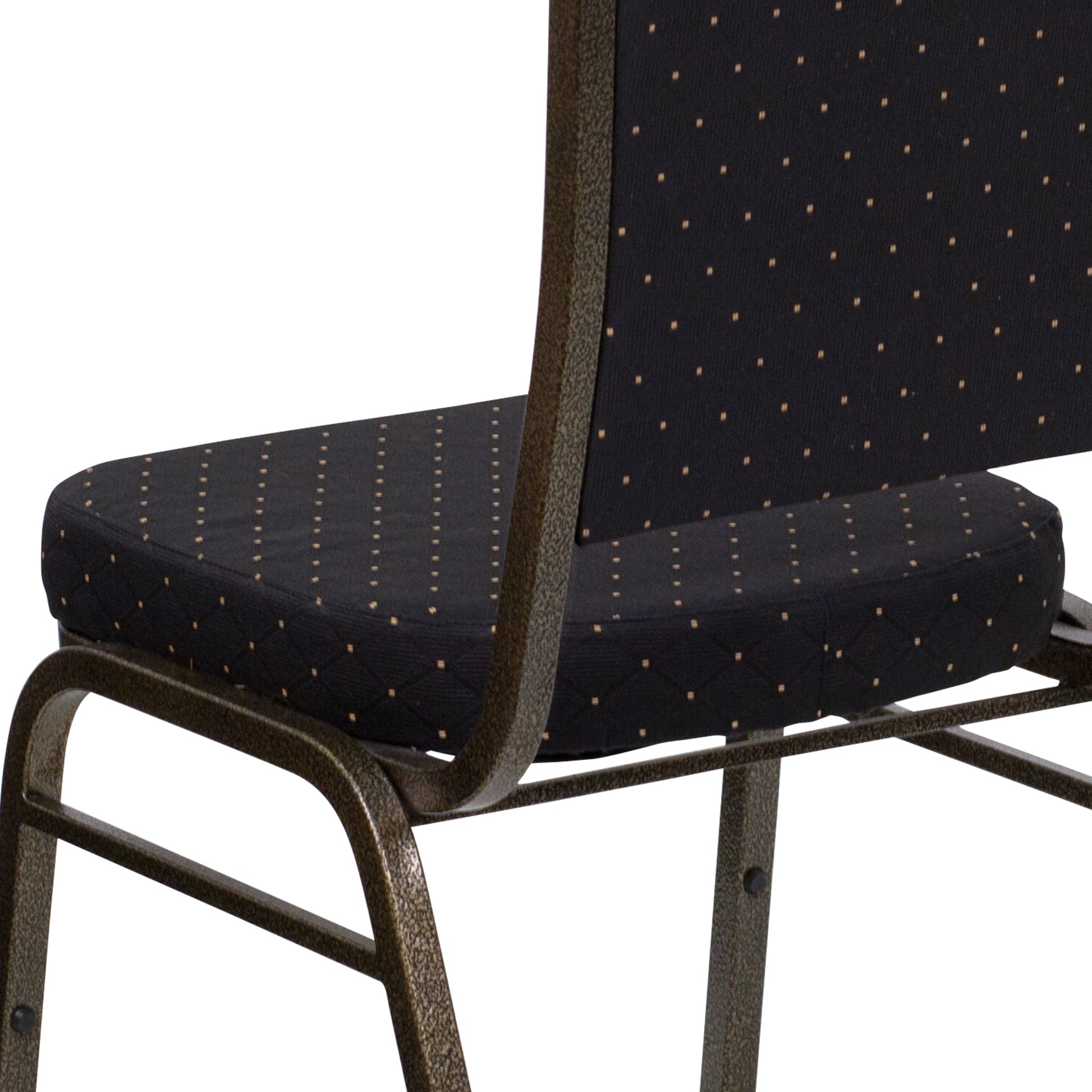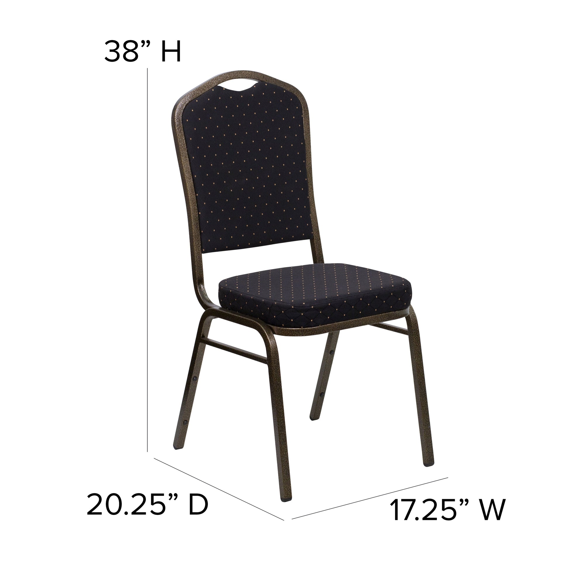 HERCULES Series Crown Back Stacking Banquet Chair in Black Patterned Fabric - Gold Vein Frame Dimensions: 17.25"W x 20.25"D x 38"H