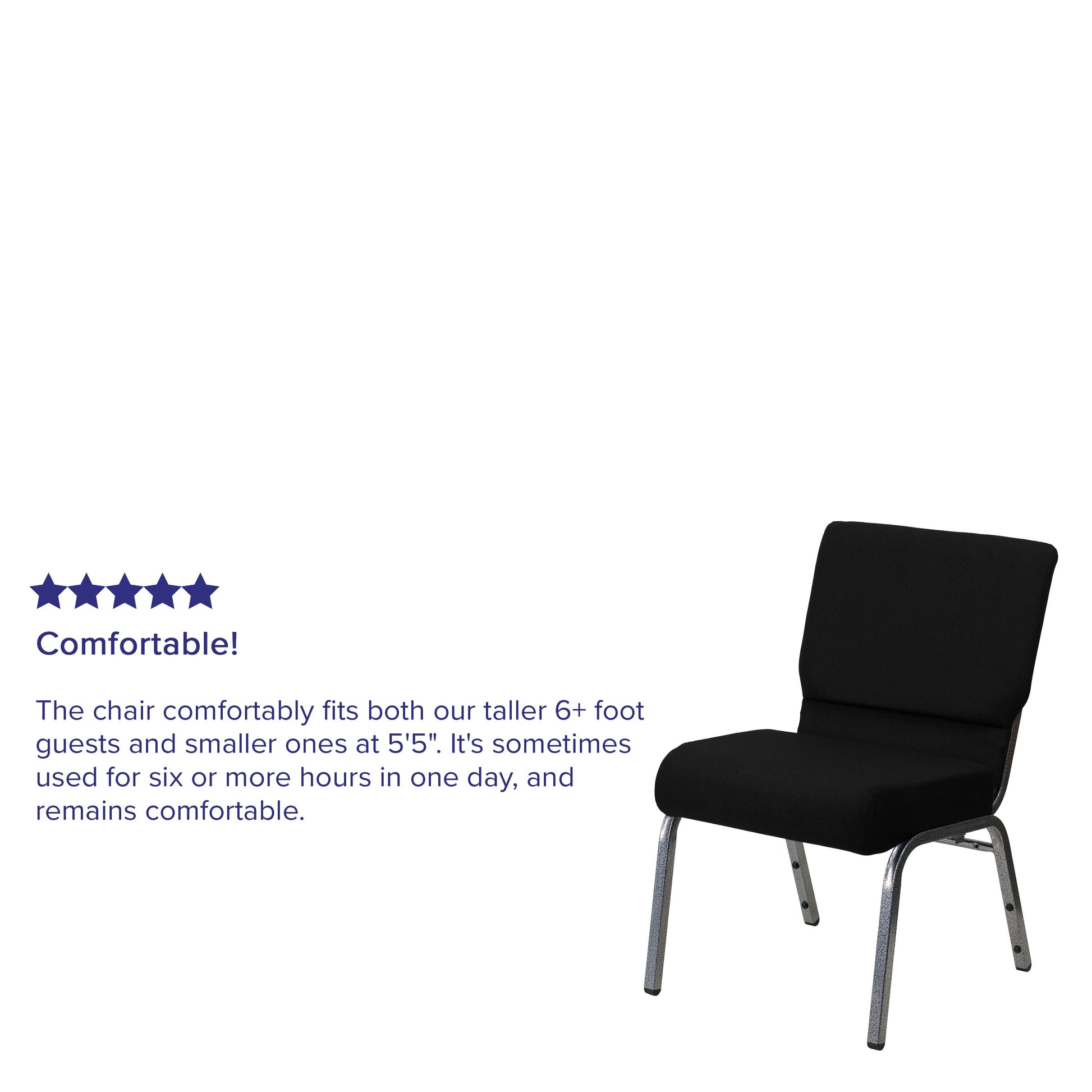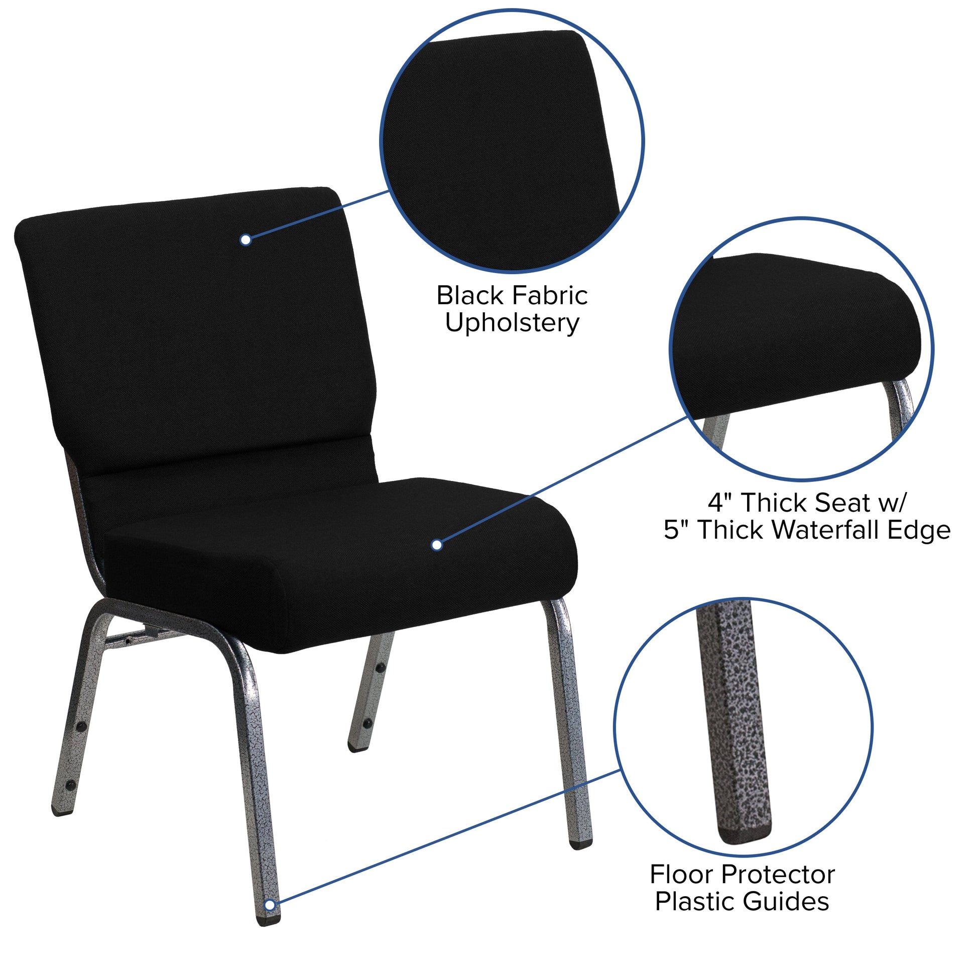 HERCULES Series 21''W Stacking Church Chair in Black Fabric - Silver Vein Frame Dimensions: 21"W x 25"D x 33"H