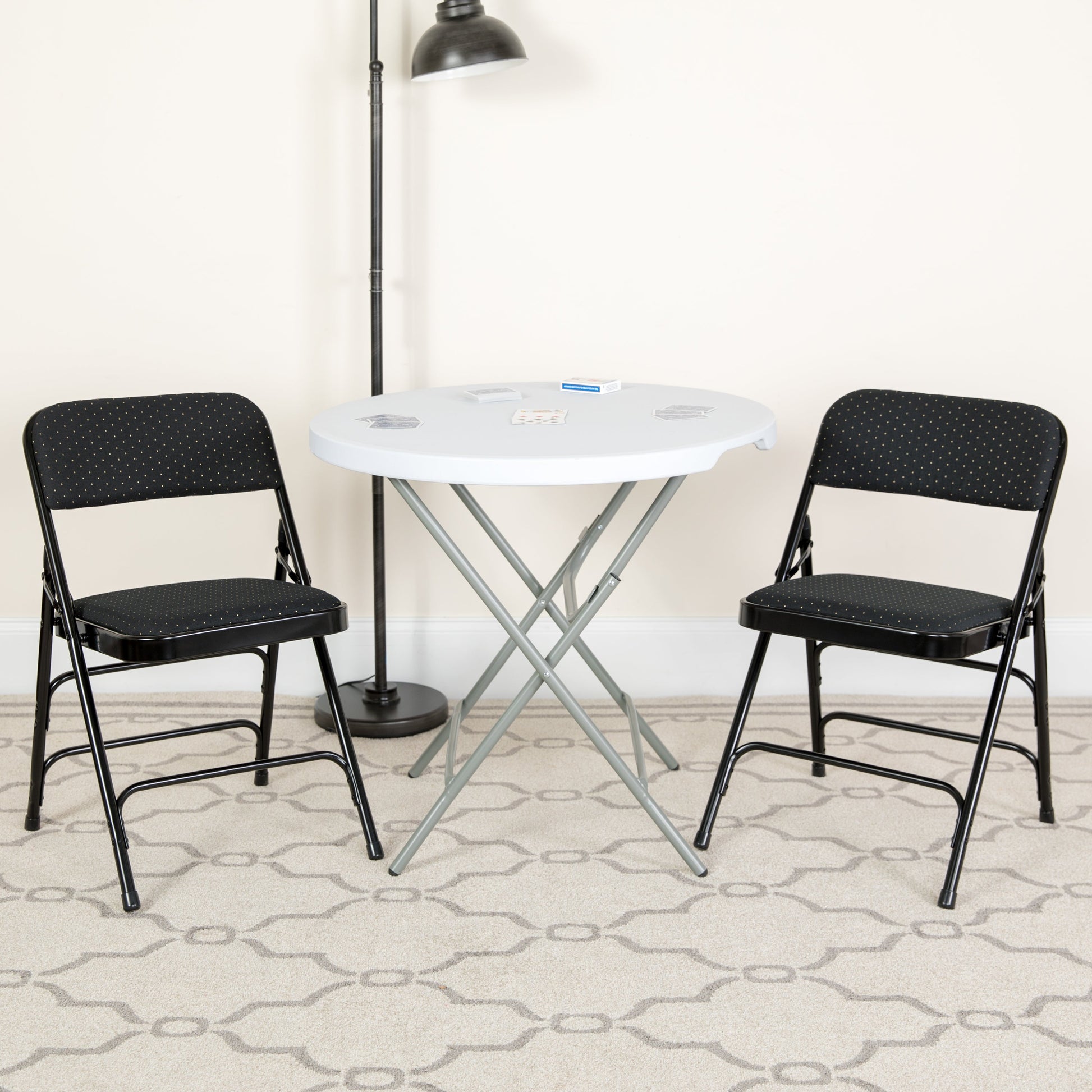 2 Pack HERCULES Series Curved Triple Braced & Double Hinged Black Patterned Fabric Metal Folding Chair Dimensions: 18.75"W x 18"D x 30"H