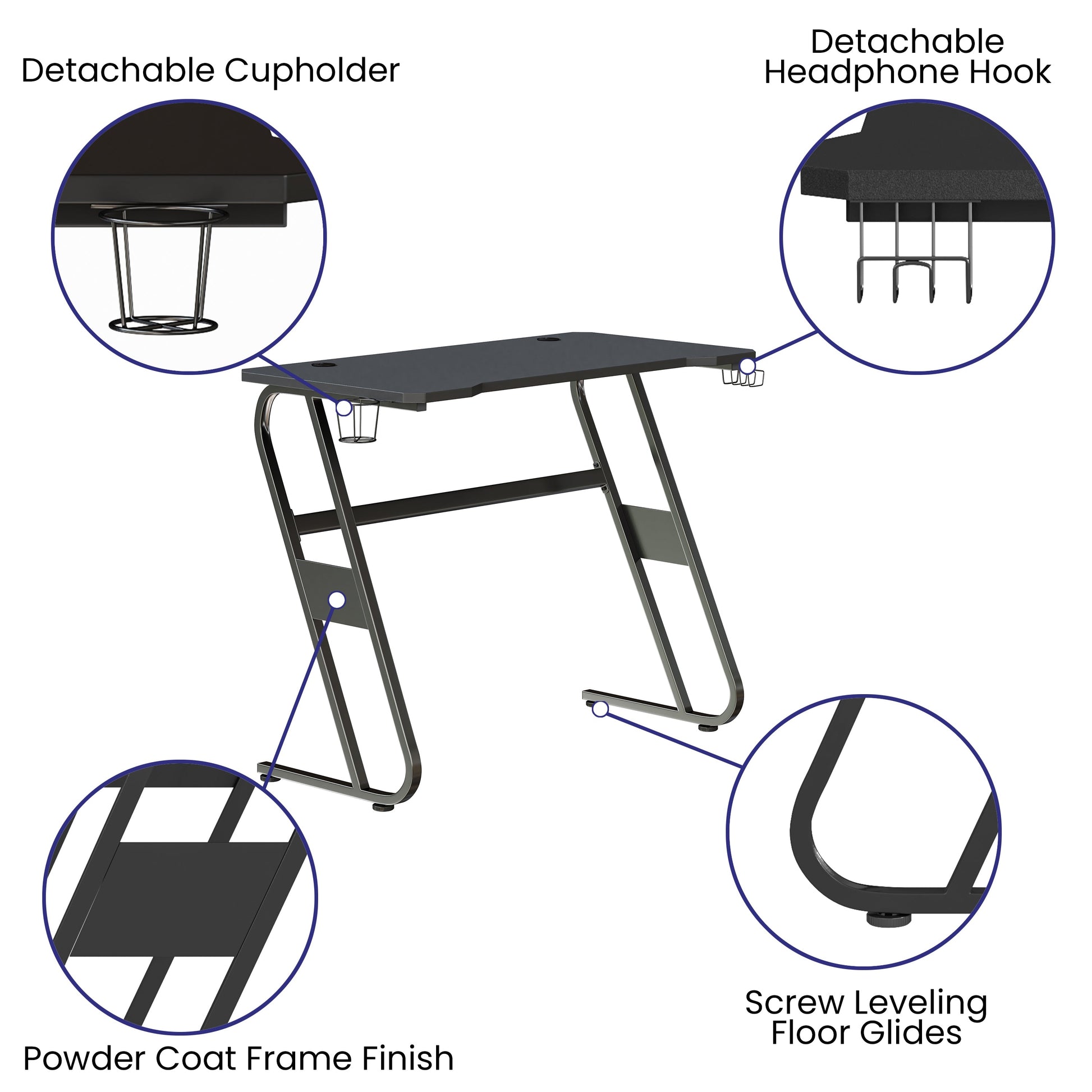 Fisher Black Gaming Ergonomic Desk with Cup Holder and Headphone Hook Dimensions: 51.5"W x 23.75"D x 30"H