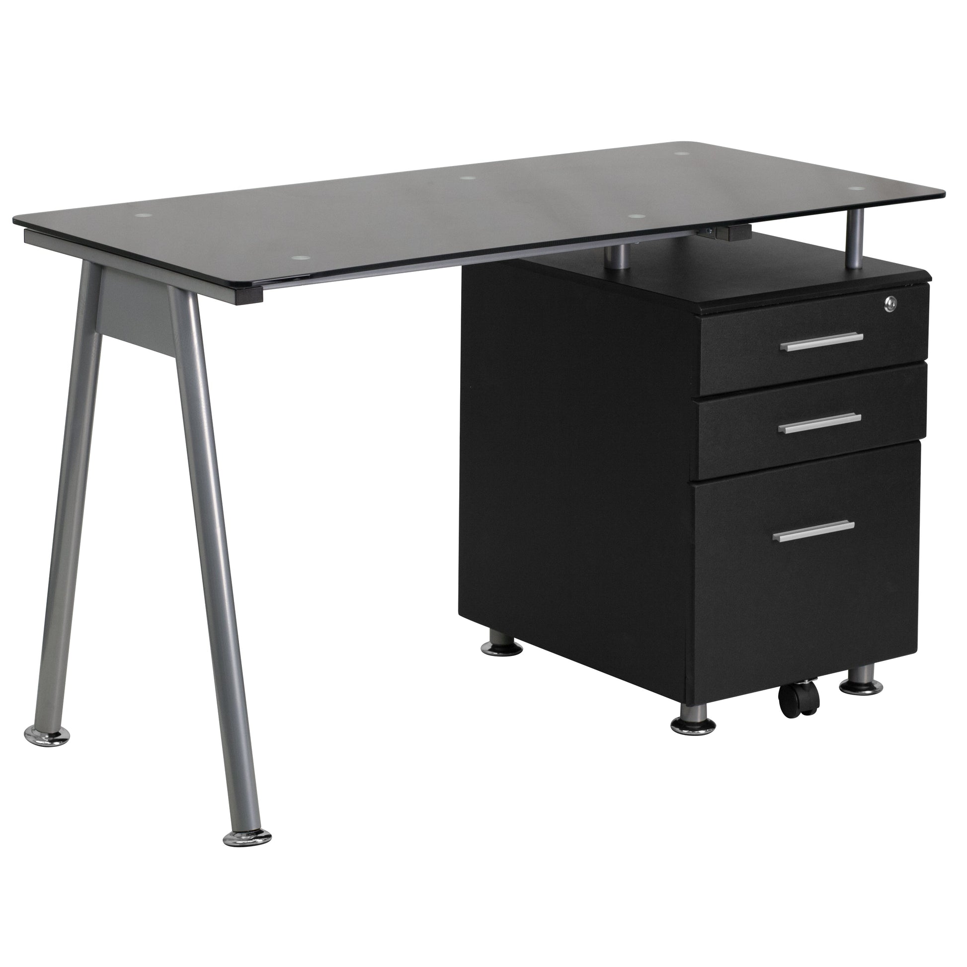 Black Glass 3 Drawer Desk NAN-WK-021A-GG