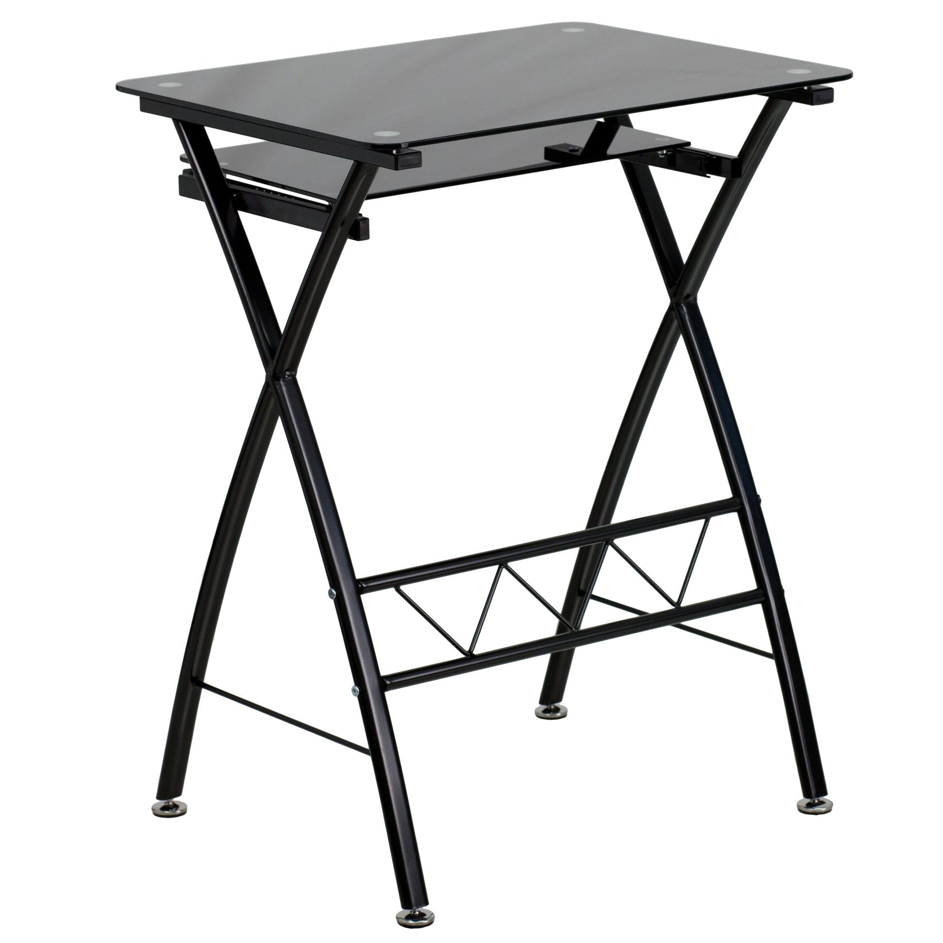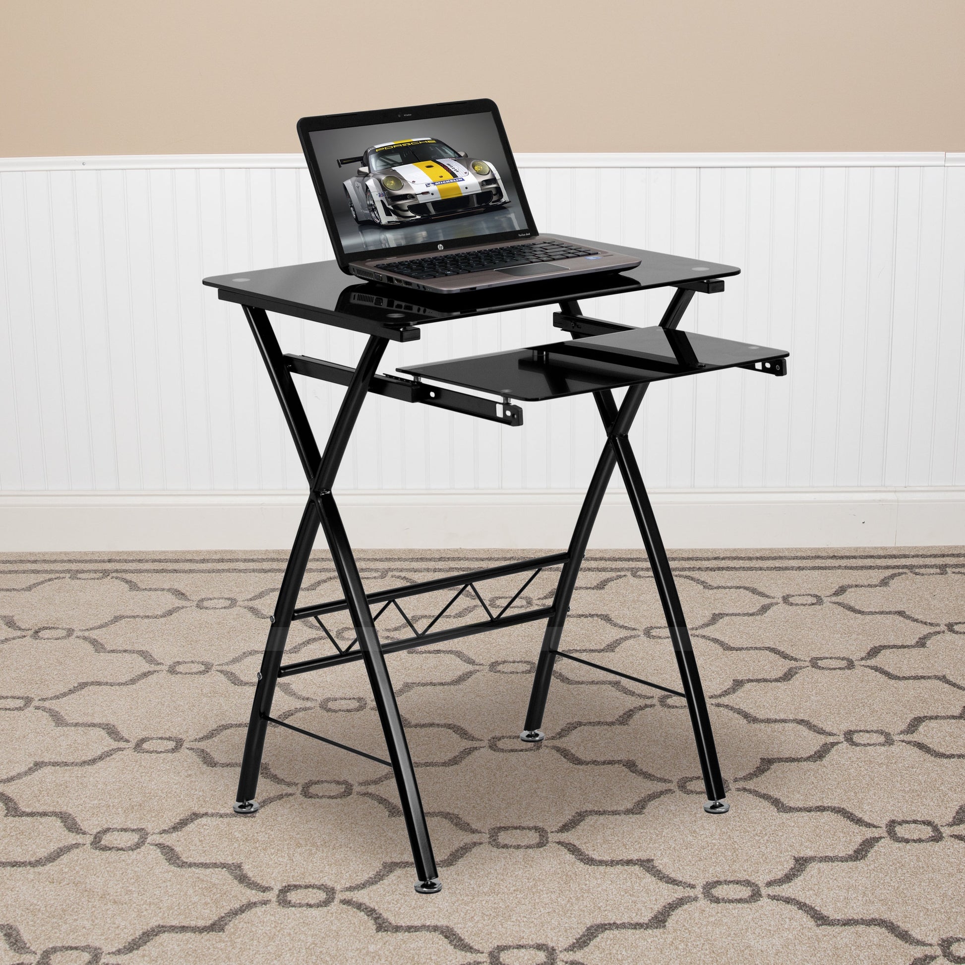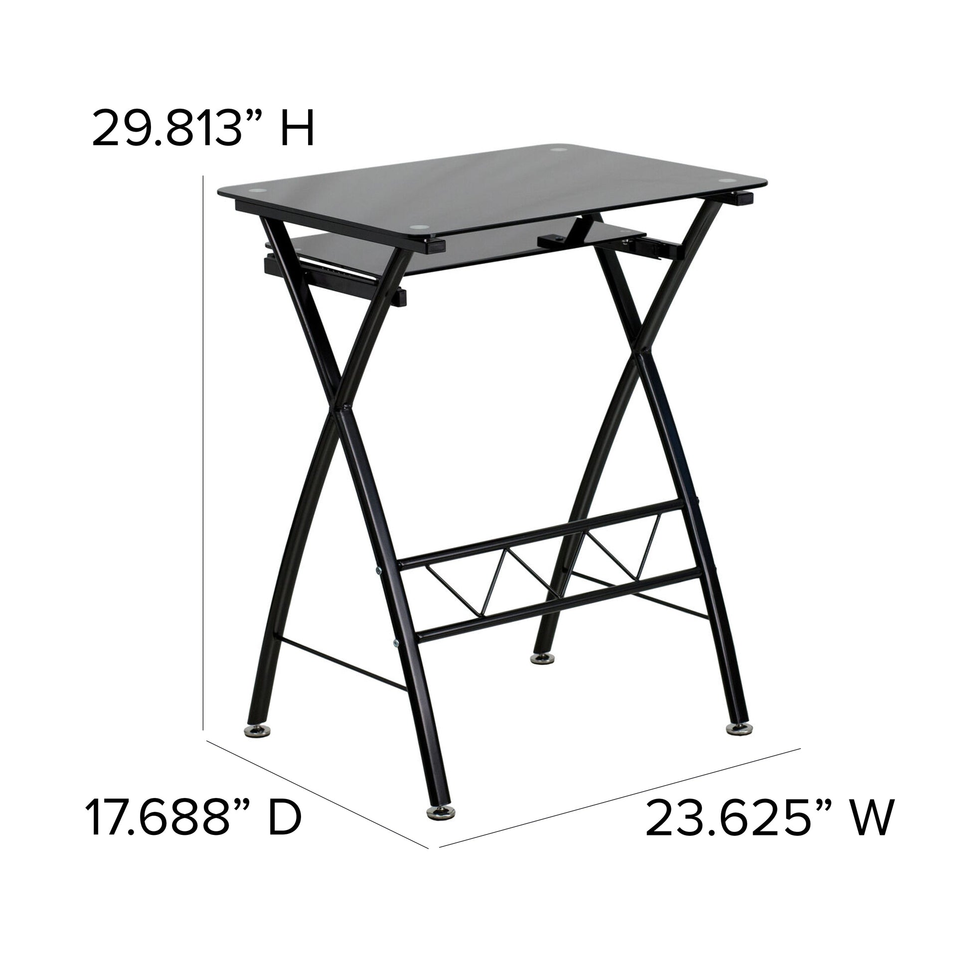 Norris Black Tempered Glass Computer Desk with Pull-Out Keyboard Tray Dimensions: 23.625"W x 17.688"D x 29.813"H