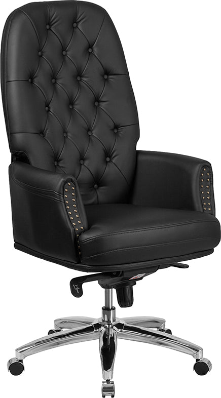Hansel High Back Traditional Tufted Black LeatherSoft Multifunction Executive Swivel Ergonomic Office Chair with Arms Dimensions: 28"W x 28.5"D x 48" - 50.25"H