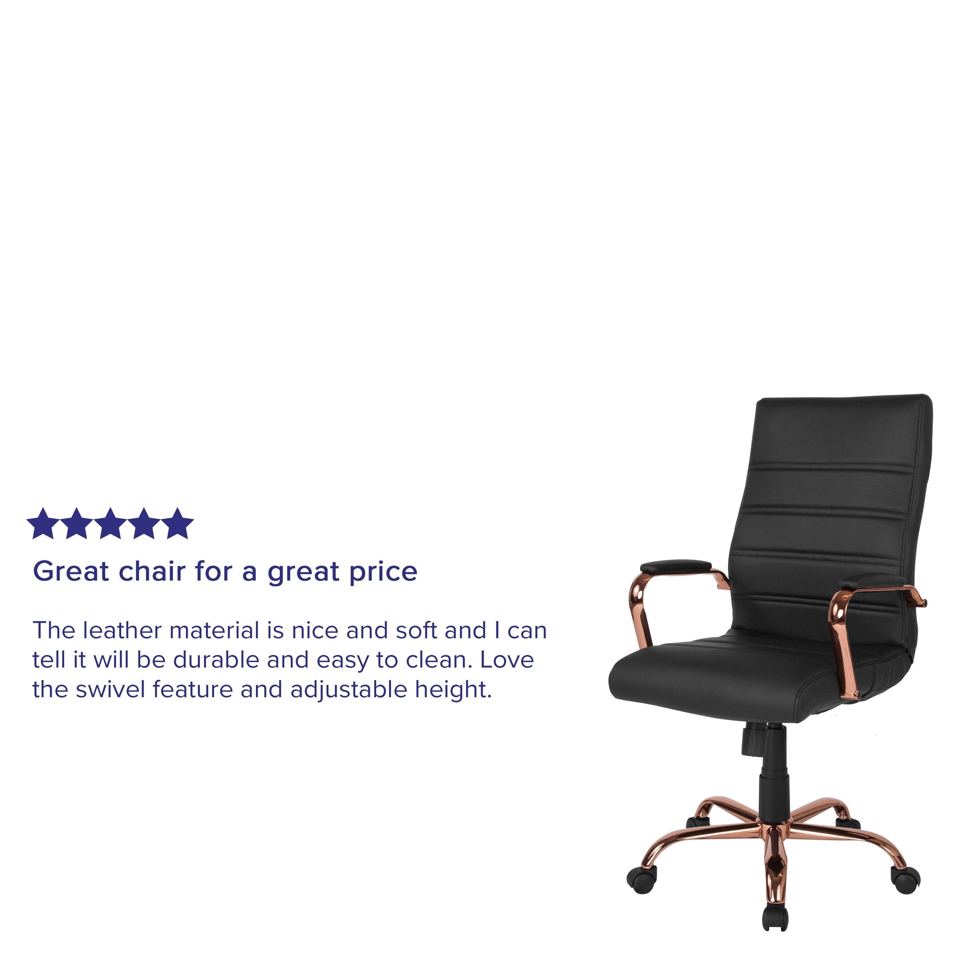 Whitney High Back Black LeatherSoft Executive Swivel Office Chair with Rose Gold Frame and Arms Dimensions: 26"W x 27"D x 39.25" - 43"H