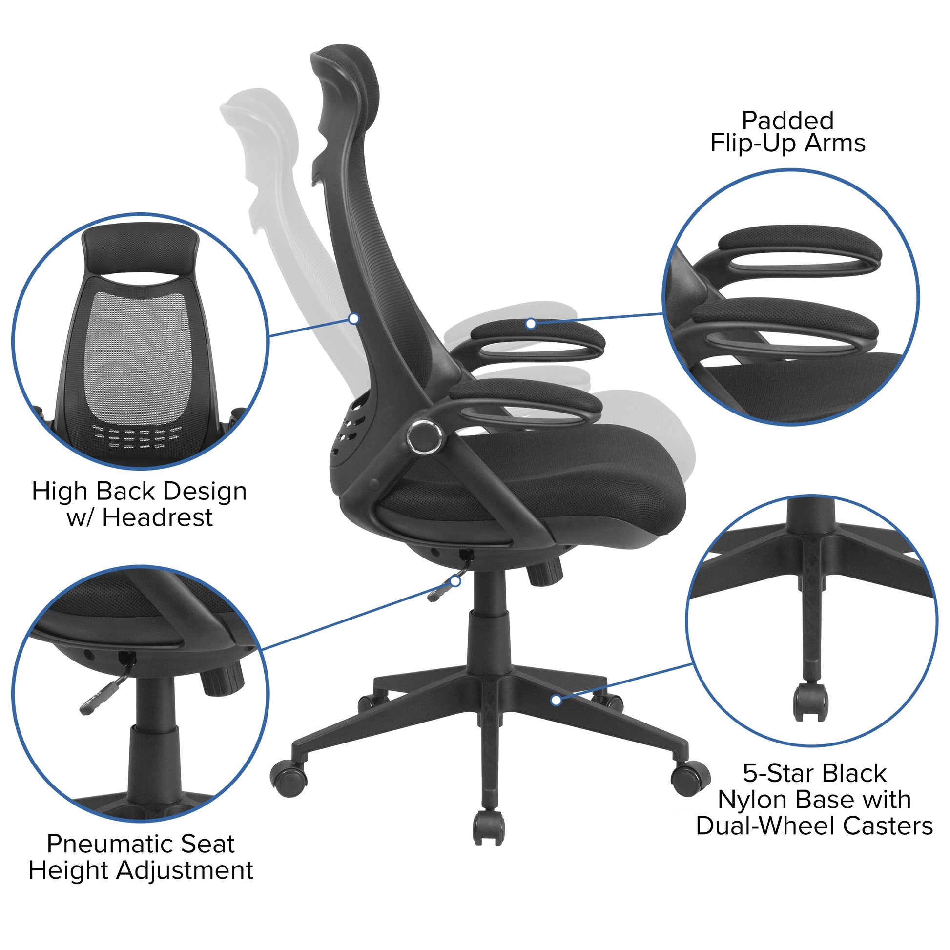 Ivan High Back Black Mesh Executive Swivel Office Chair with Flip-Up Arms Dimensions: 27"W x 23"D x 45.75" - 48.25"H