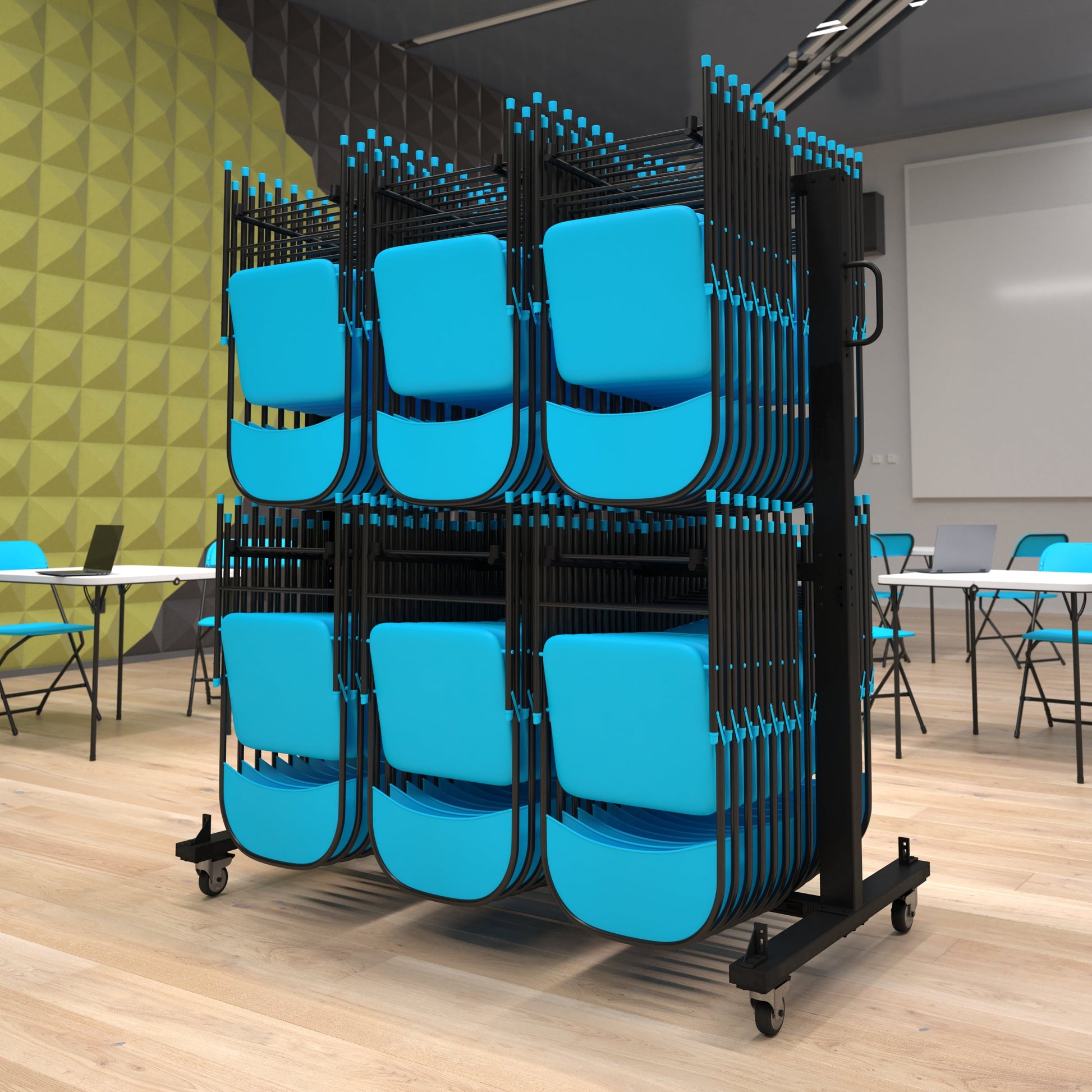 Hawkins Heavy Duty Folding Table and Chairs Mobile Cart-Locking Wheels, Outdoor Cover, 84 Folding Chairs or 42 Chairs and 12 Tables Capacity, Black Dimensions: 71.5"W x 33.5"D x 73.5"H
