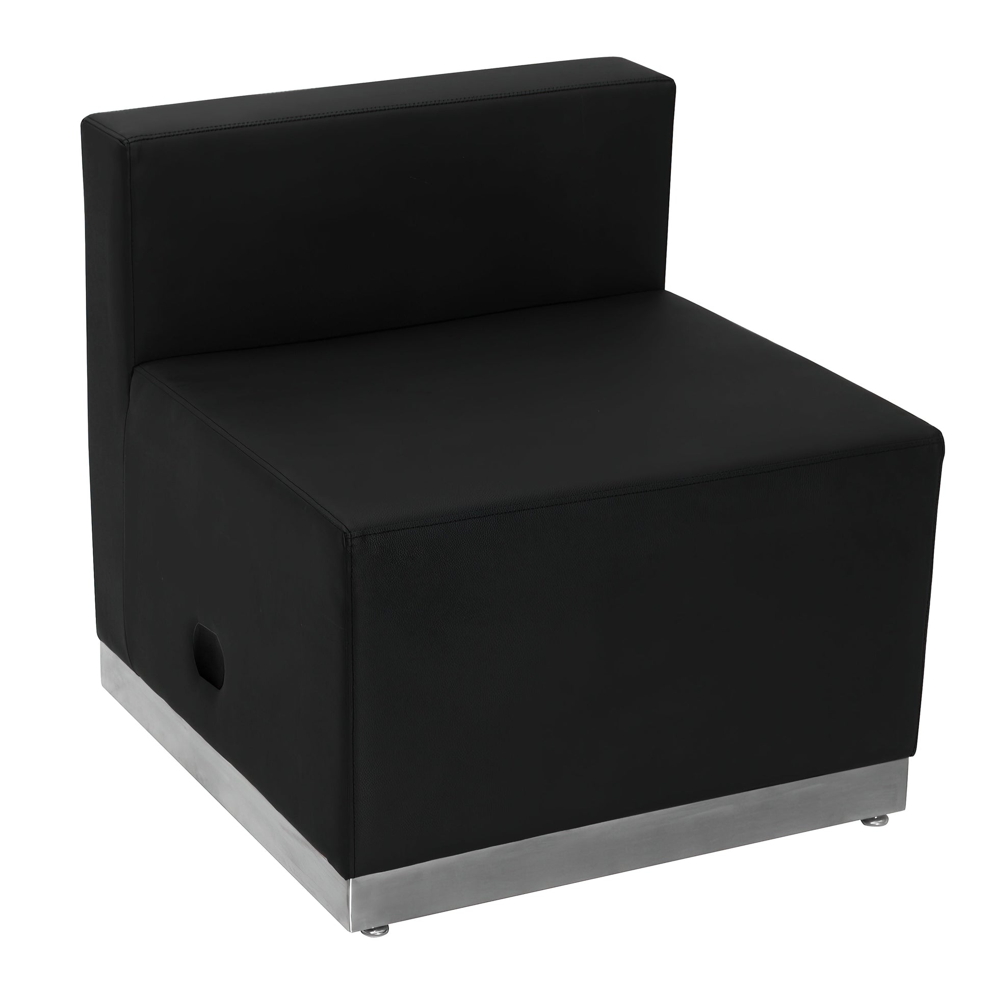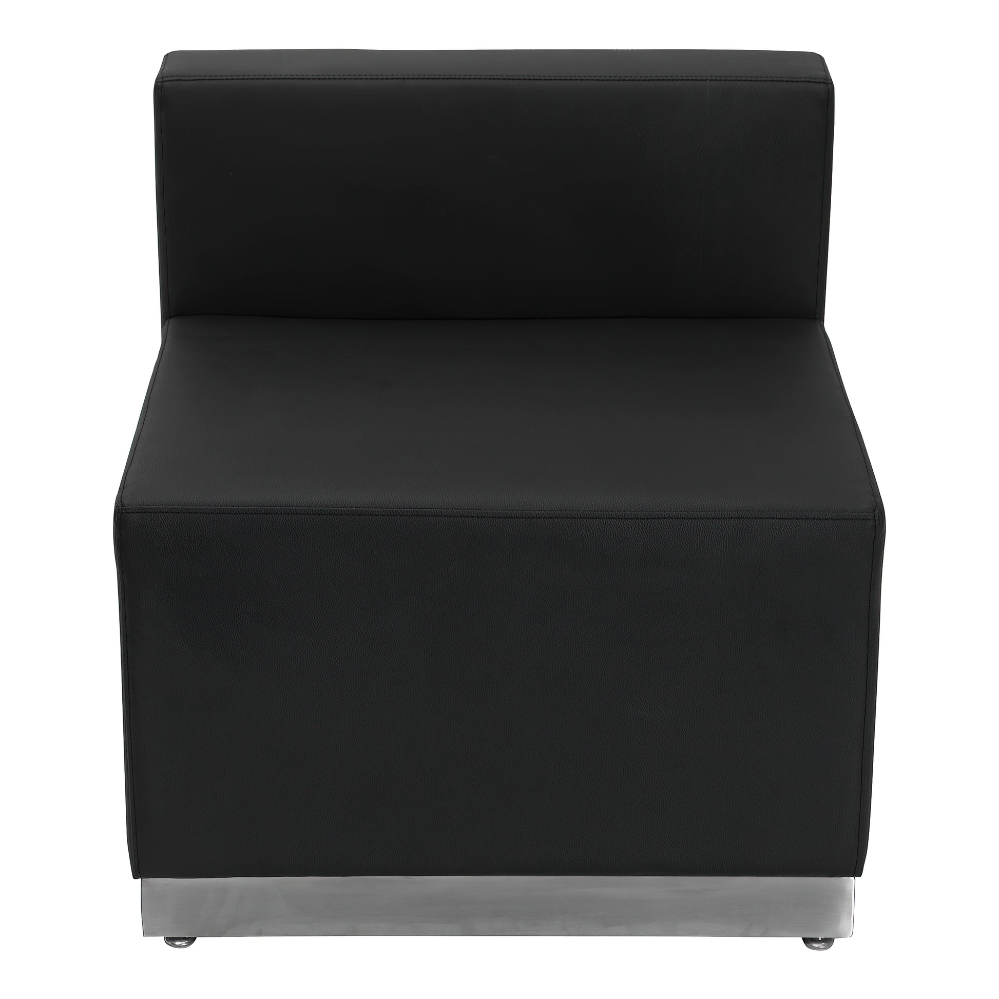 HERCULES Alon Series Black LeatherSoft Chair with Brushed Stainless Steel Base Dimensions: 25.5"W x 25.25"D x 27"H
