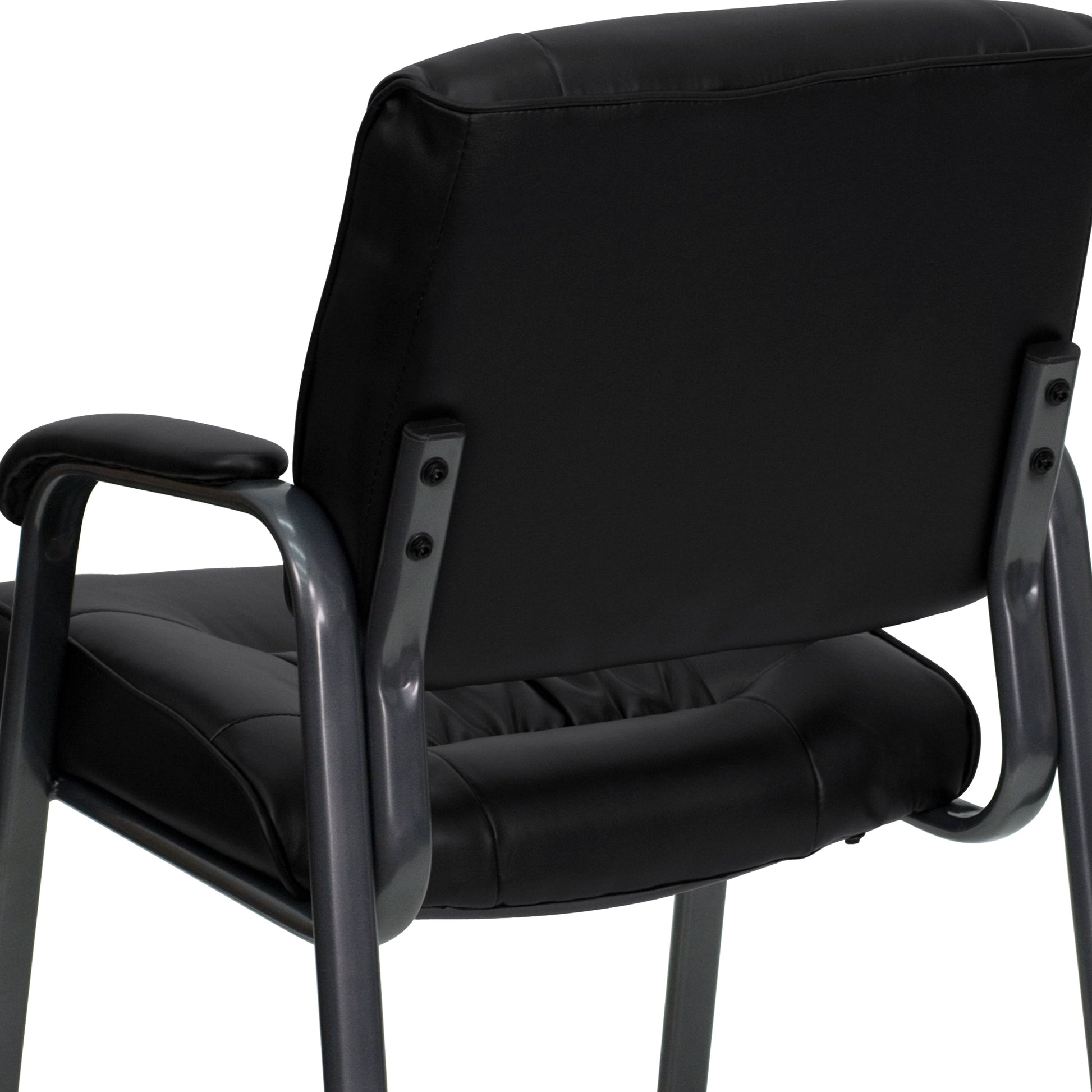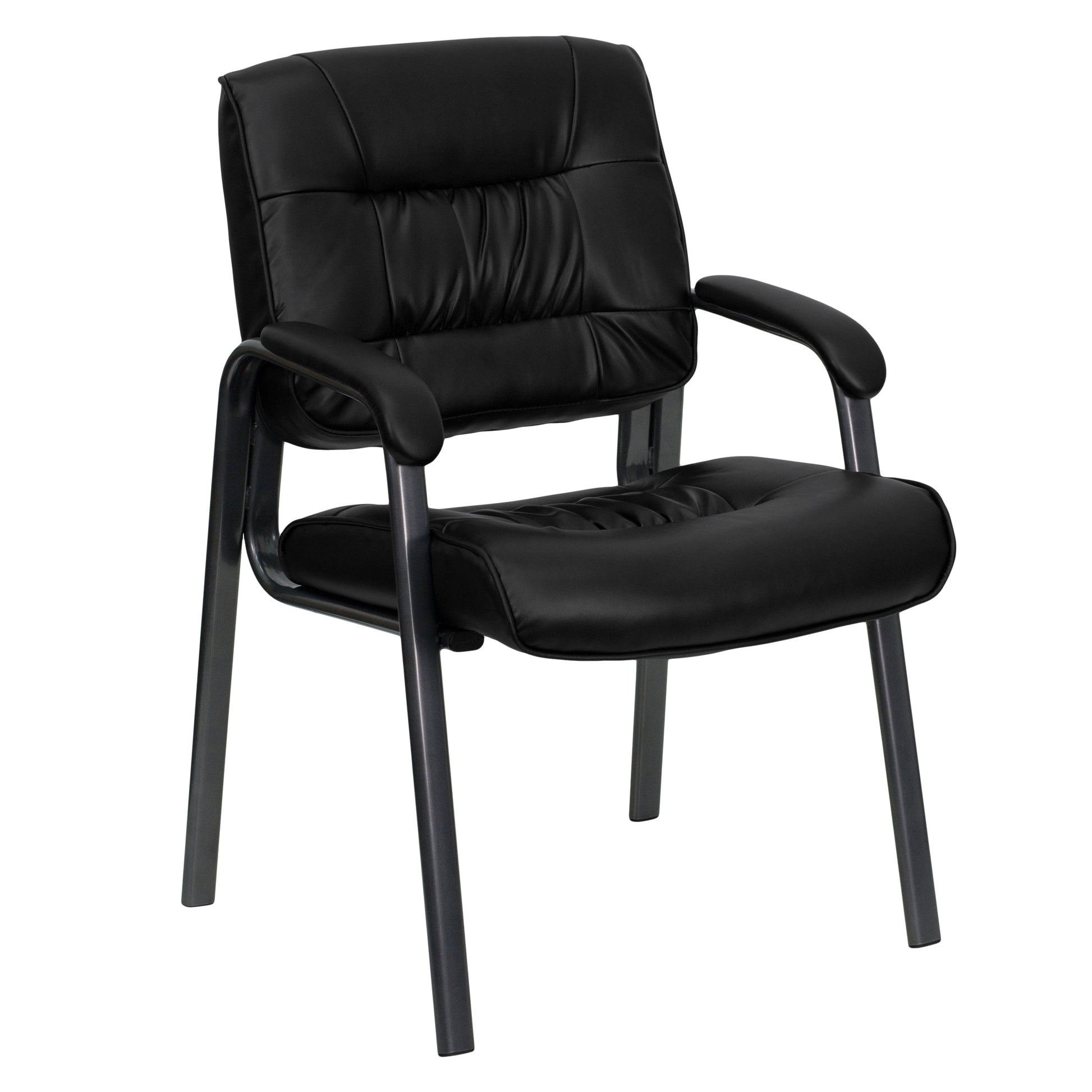 Haeger Black LeatherSoft Executive Side Reception Chair with Titanium Gray Powder Coated Frame Dimensions: 23.25"W x 26"D x 36"H