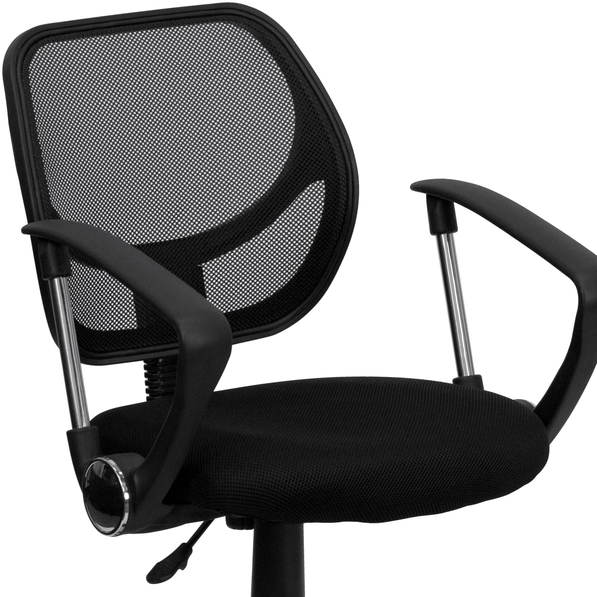 Neri Low Back Black Mesh Swivel Task Office Chair with Curved Square Back and Arms Dimensions: 21.5"W x 22.5"D x 30.5" - 34.5"H