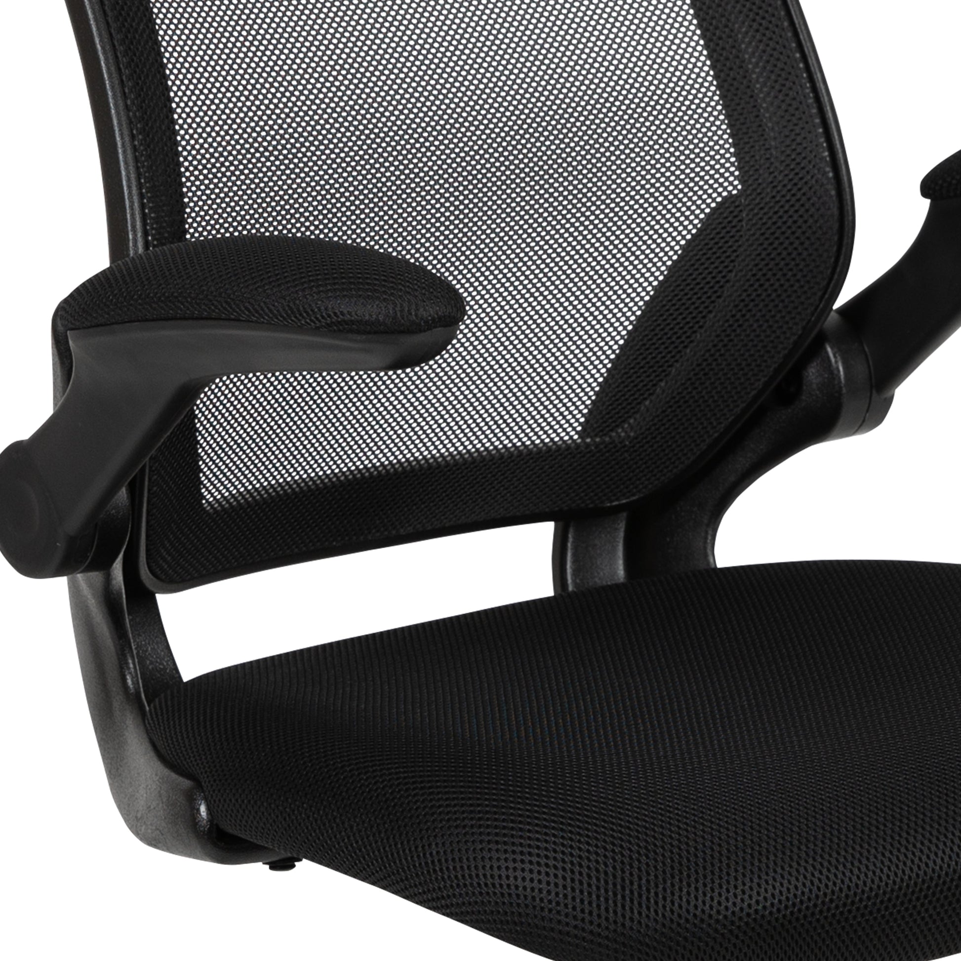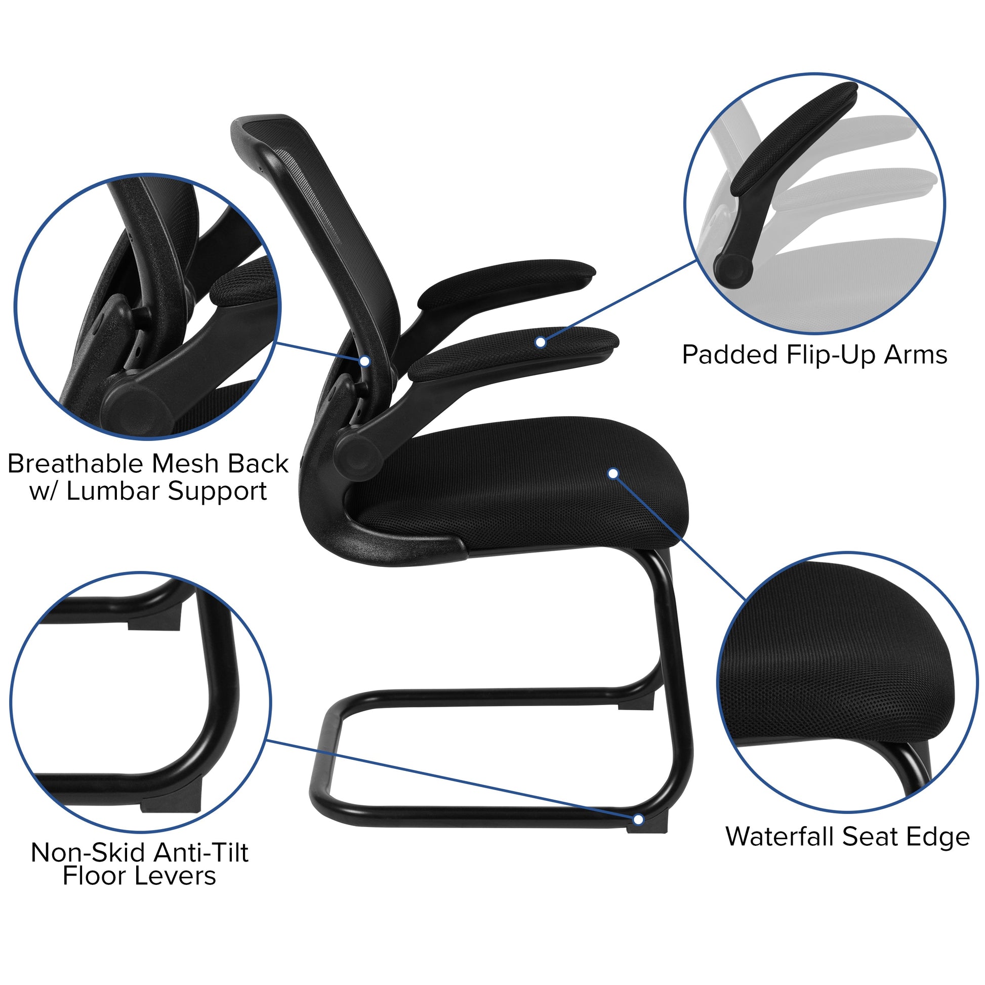 Kale Black Mesh Sled Base Side Reception Chair with Flip-Up Arms Dimensions: 24.25"W x 24.75"D x 37.5"H