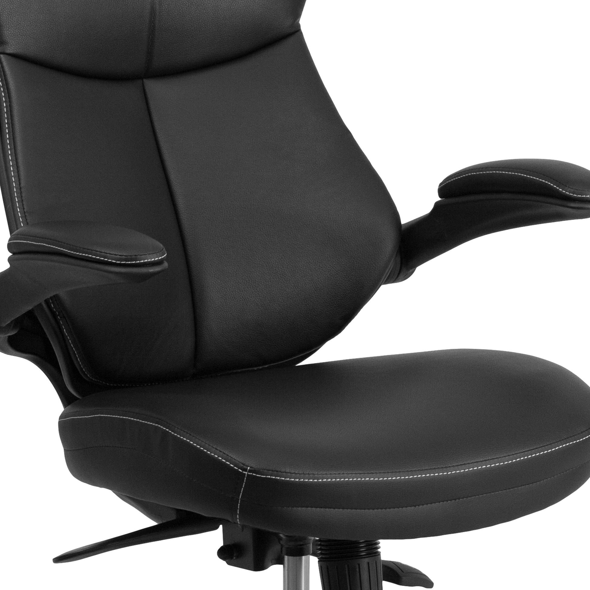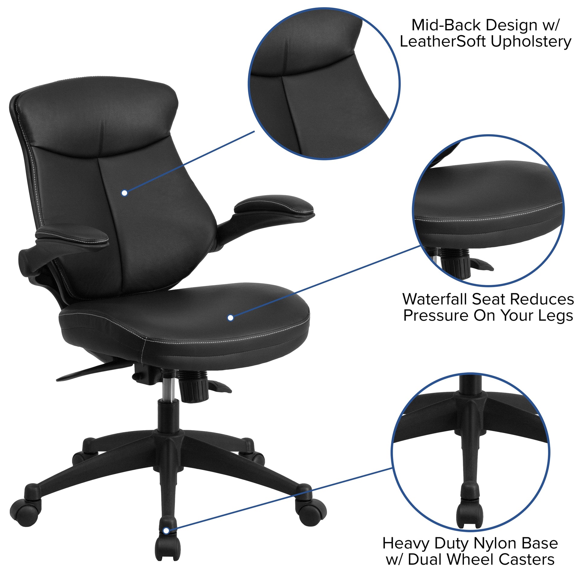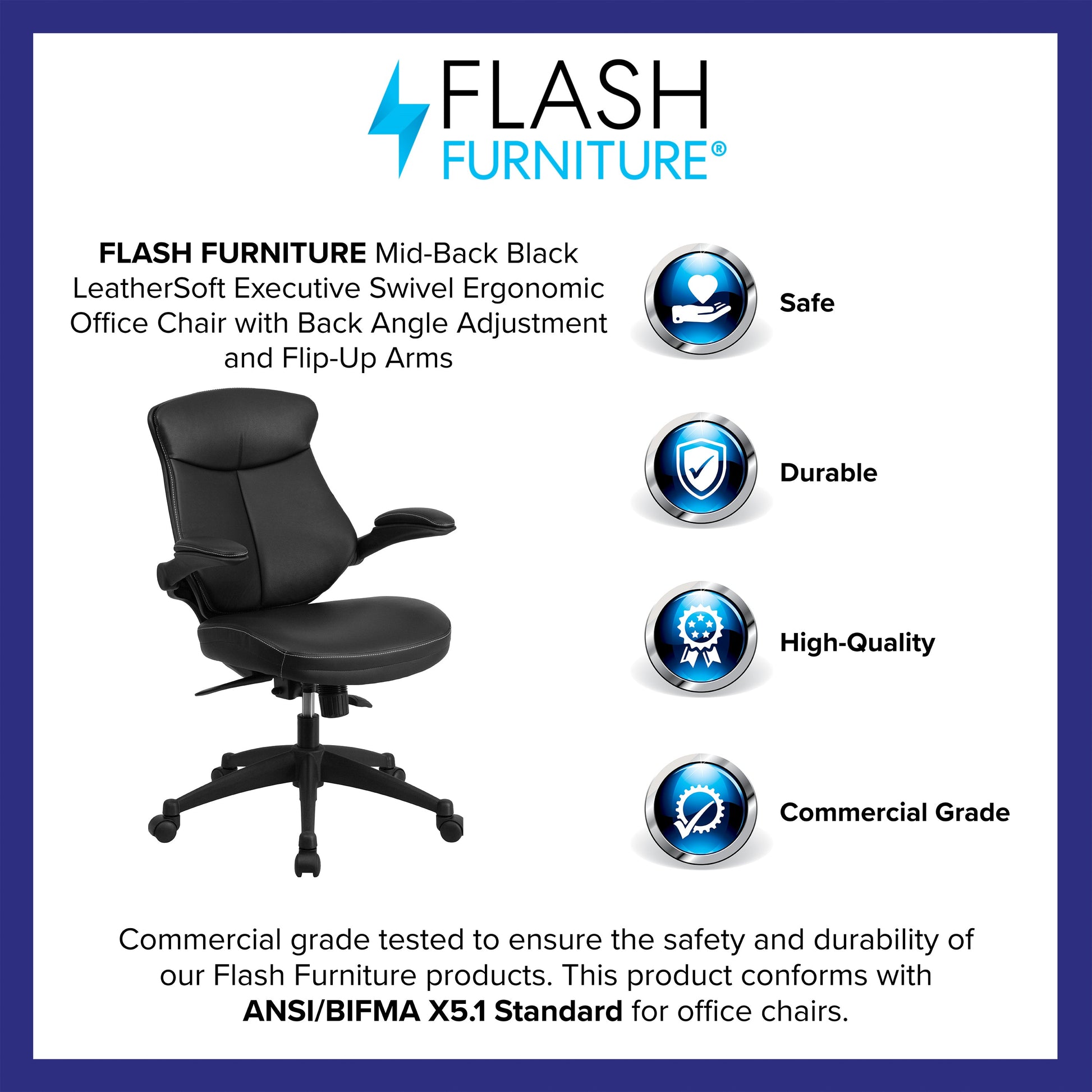 Kale Mid-Back Black LeatherSoft Executive Swivel Ergonomic Office Chair with Back Angle Adjustment and Flip-Up Arms Dimensions: 26"W x 25"D x 36.5" - 40.5"H