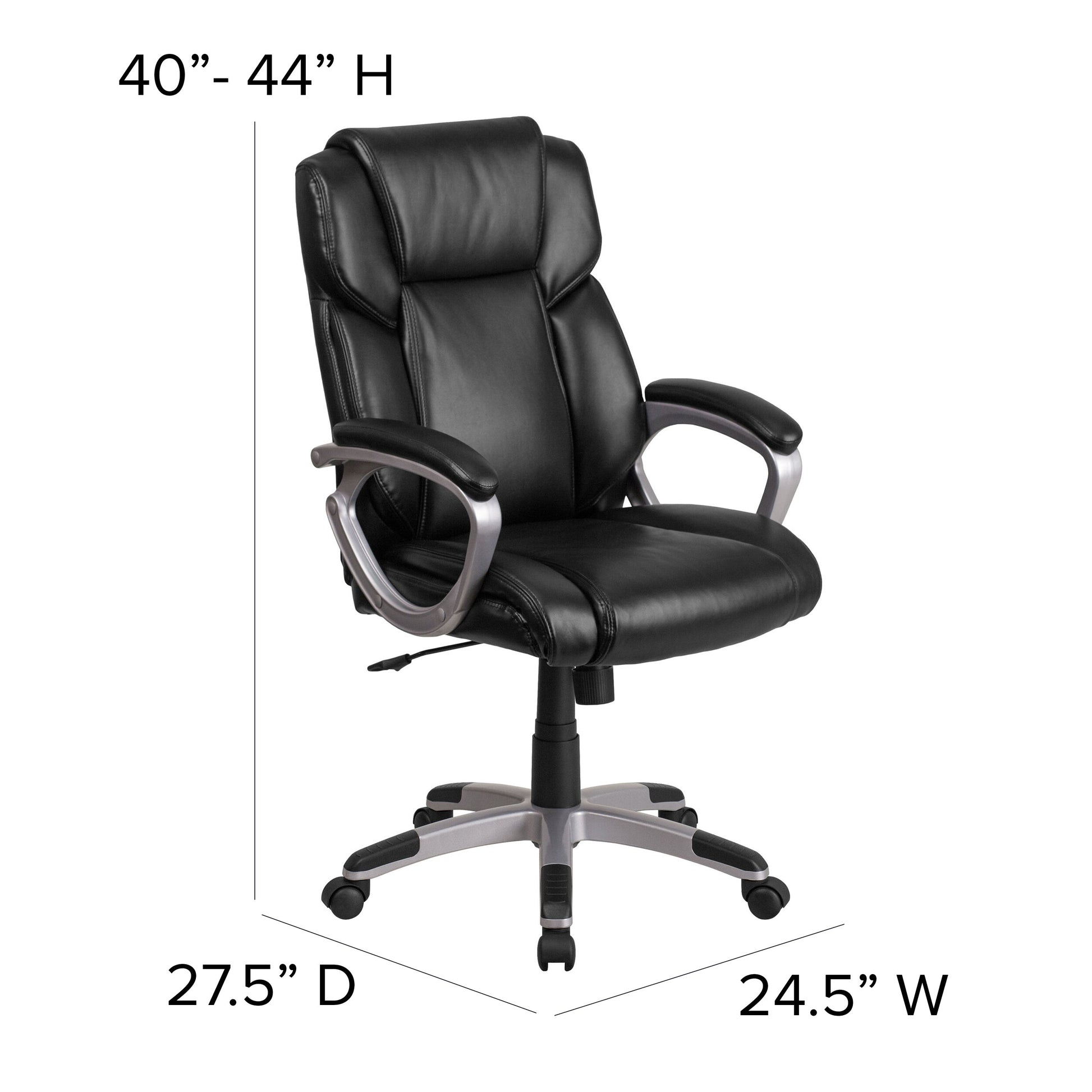 Carolyn Mid-Back Black LeatherSoft Executive Swivel Office Chair with Padded Arms Dimensions: 24.5"W x 27.5"D x 40" - 44"H