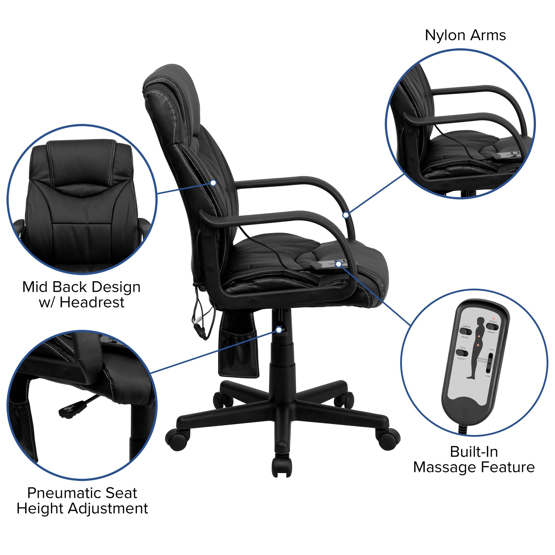 Laverne Mid-Back Ergonomic Massaging Black LeatherSoft Executive Swivel Office Chair with Arms Dimensions: 25"W x 24"D x 37" - 41.5"H