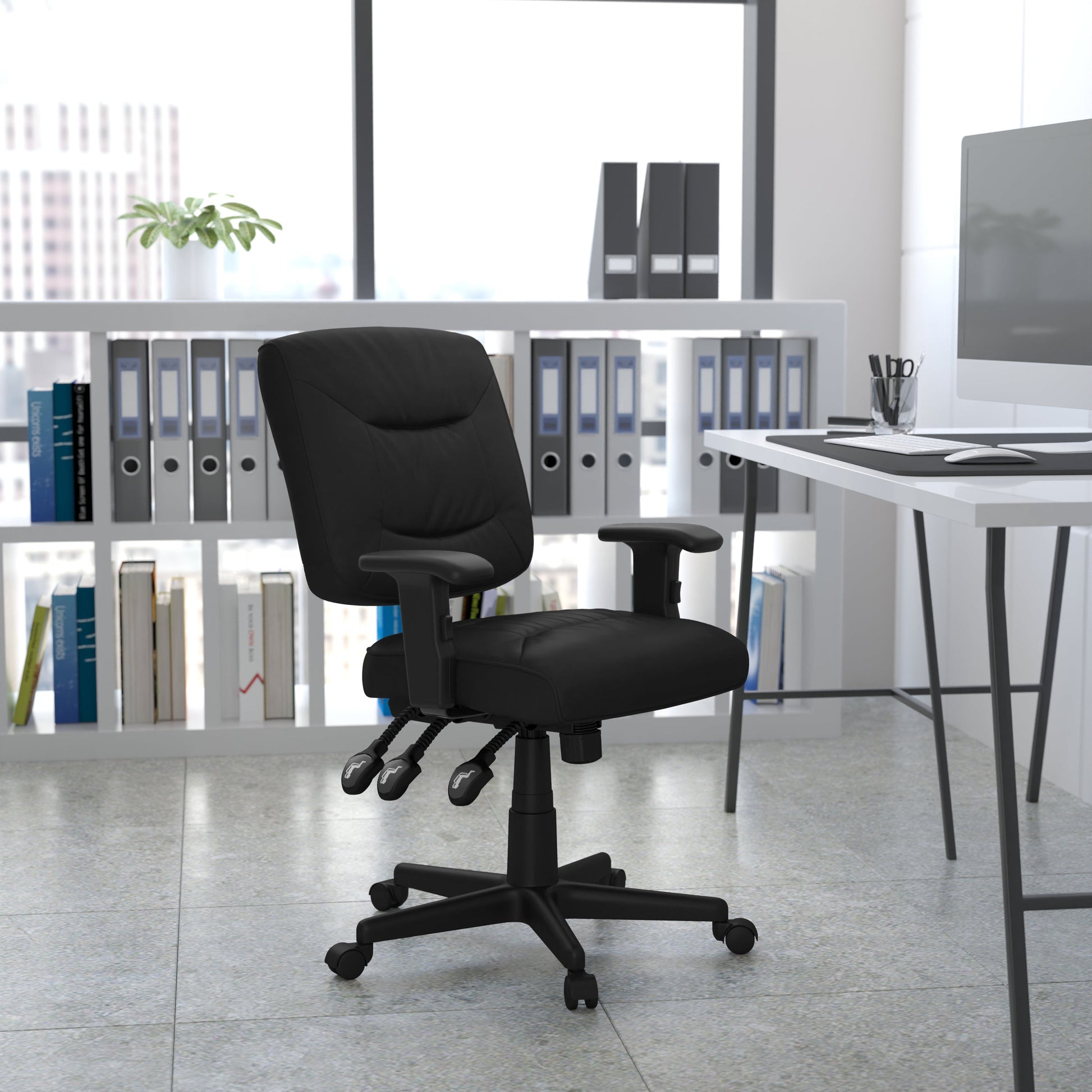 Cole Mid-Back Black LeatherSoft Multifunction Swivel Ergonomic Task Office Chair with Adjustable Arms Dimensions: 25"W x 25"D x 34" - 40.25"H