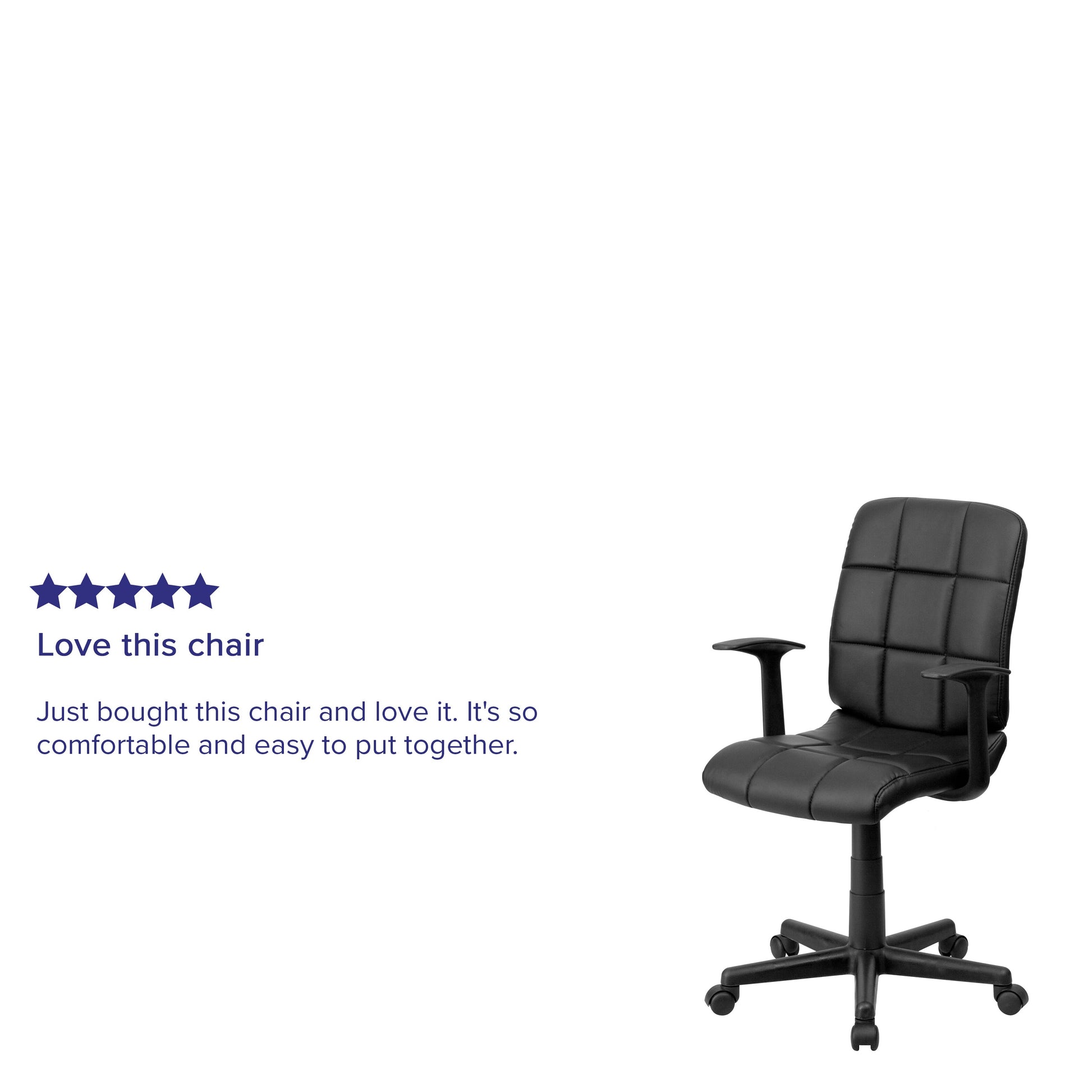 Clayton Mid-Back Black Quilted Vinyl Swivel Task Office Chair with Arms Dimensions: 23"W x 24"D x 34" - 38.75"H
