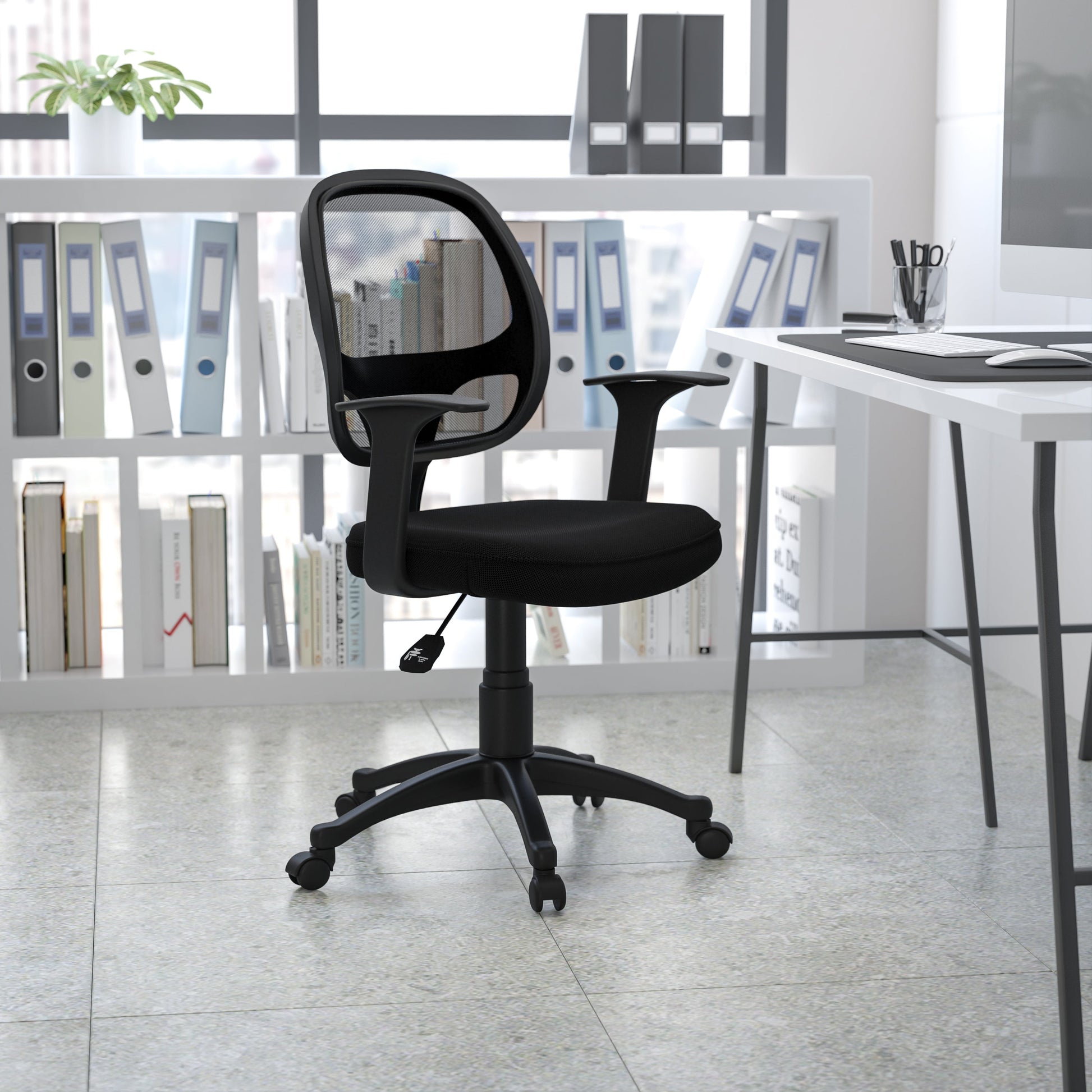 Mallard Mid-Back Black Mesh Swivel Ergonomic Task Office Chair with T-Arms - Desk Chair Dimensions: 24"W x 21"D x 34.25" - 39"H