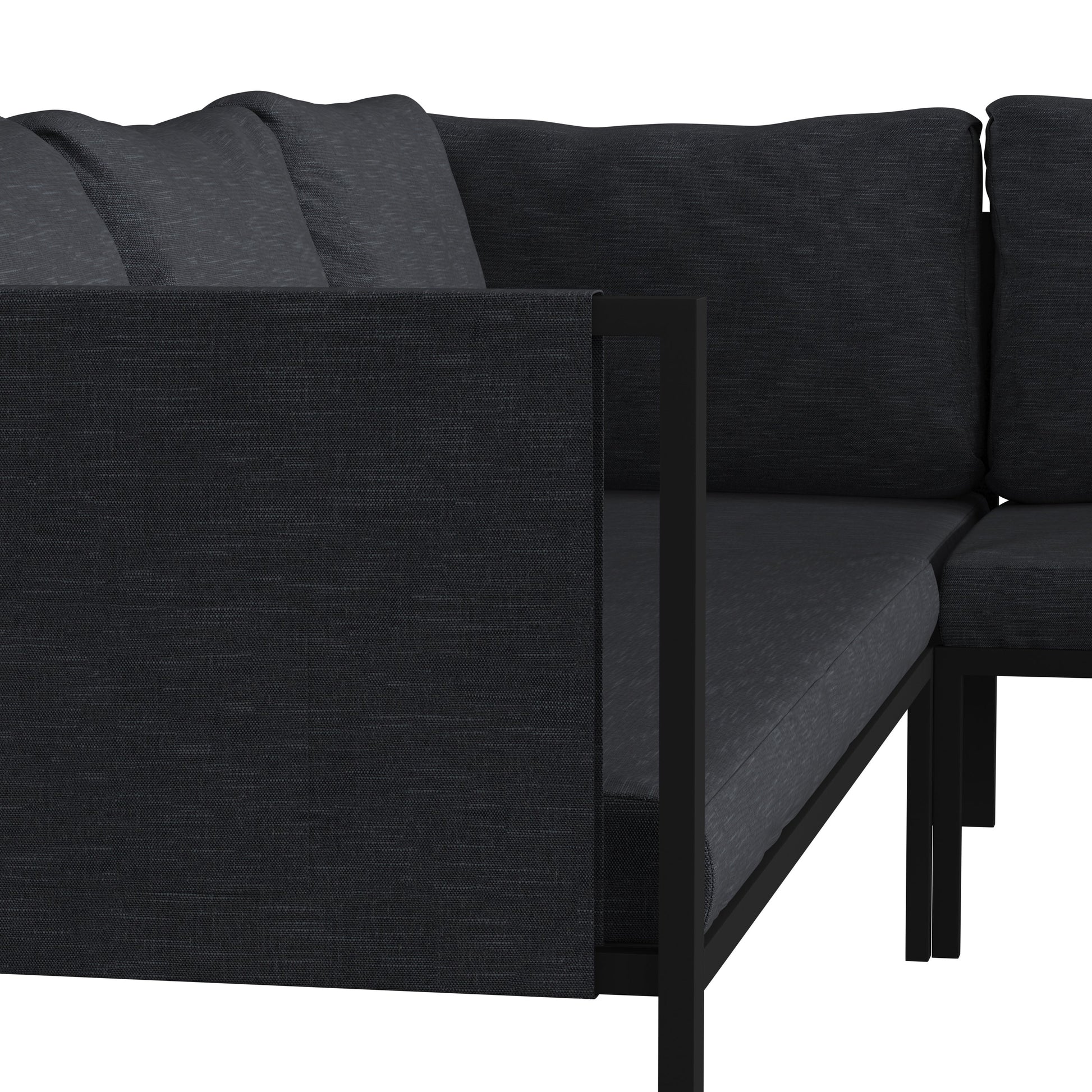 Lea Indoor/Outdoor Sectional with Cushions - Modern Steel Framed Chair with Dual Storage Pockets, Black with Charcoal Cushions Dimensions: 85.25"W x 85.25"D x 26.5"H