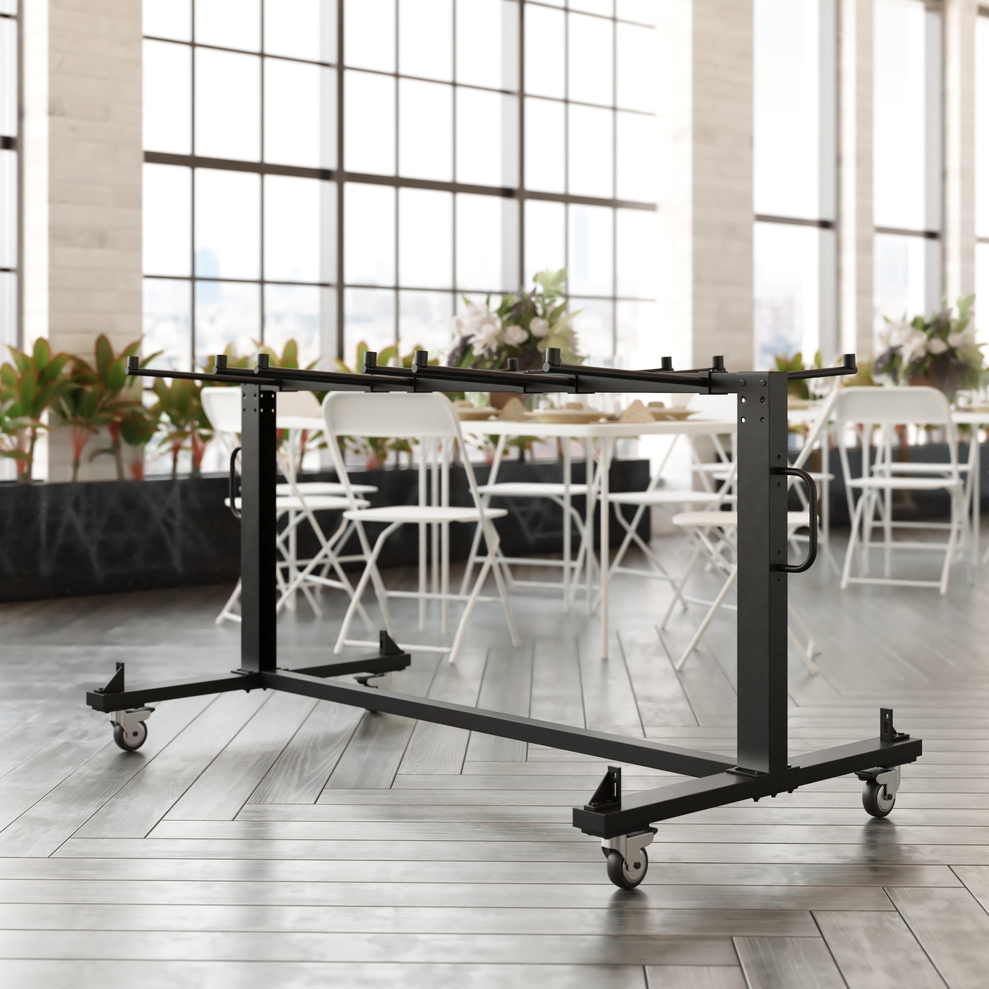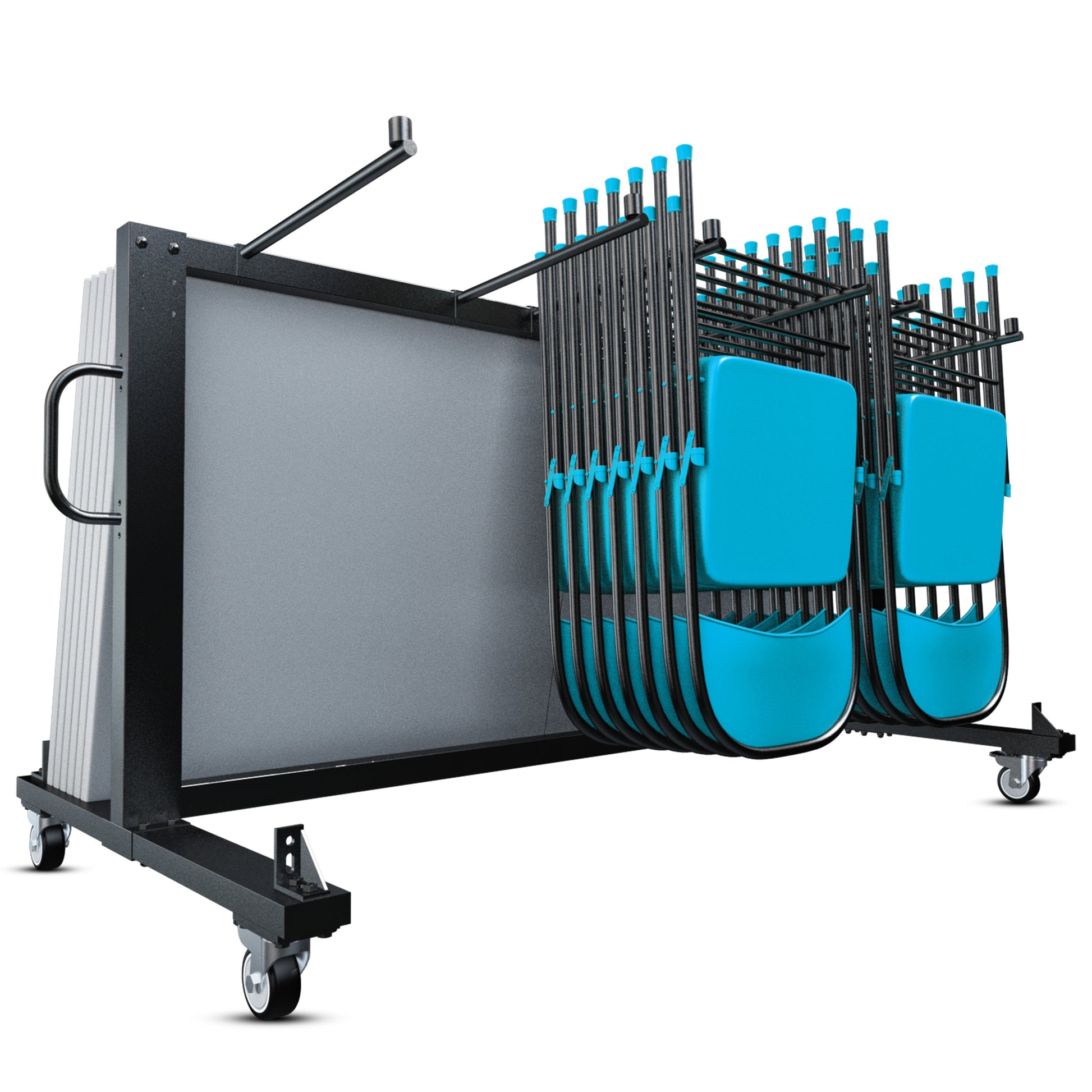 Hawkins Heavy Duty Folding Table and Chairs Mobile Cart-Locking Wheels, 42 Folding Chairs and 12 Tables Capacity, Black Dimensions: 70.25"W x 33.5"D x 47"H
