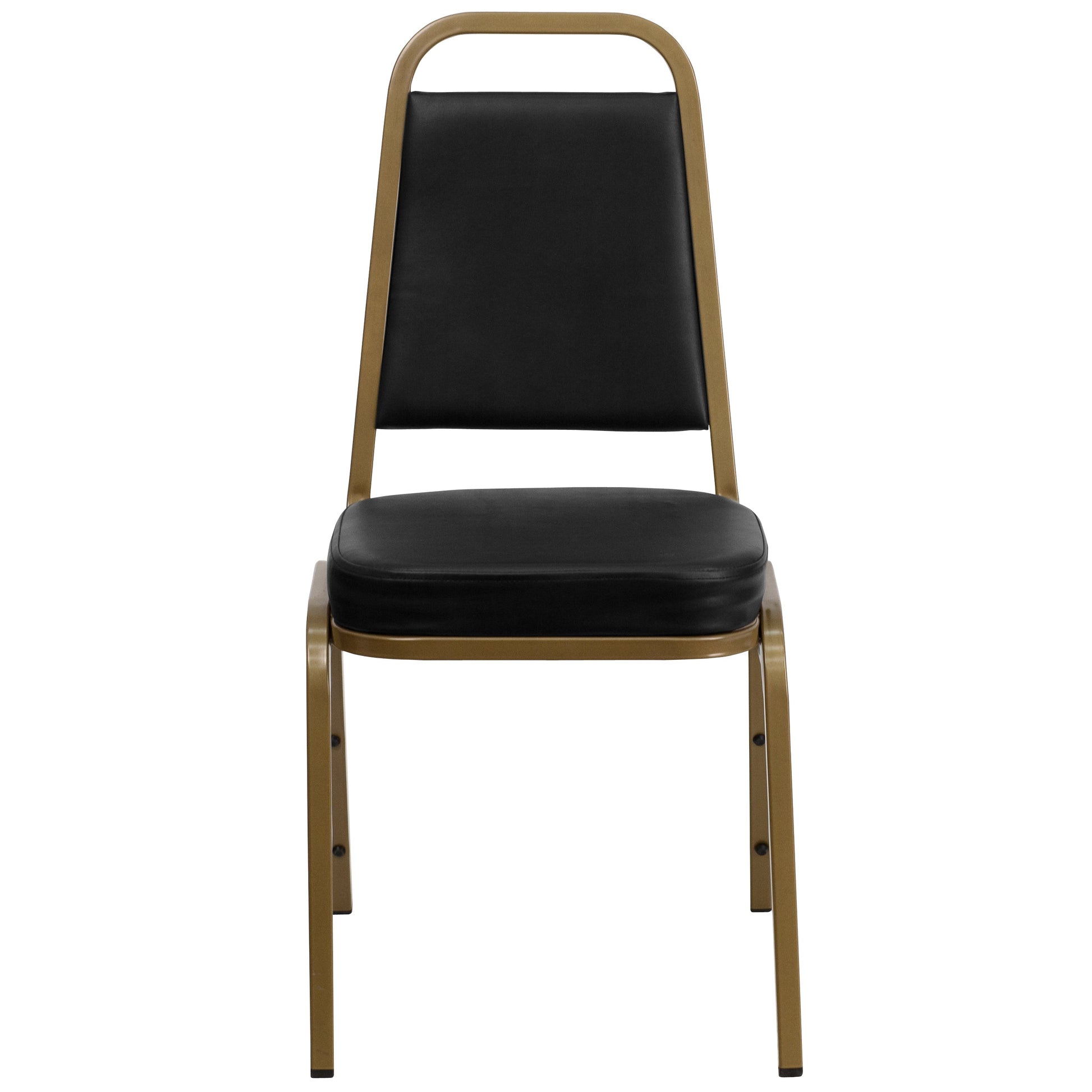HERCULES Series Trapezoidal Back Stacking Banquet Chair in Black Vinyl - Gold Frame Dimensions: 17.5"W x 20.25"D x 36"H