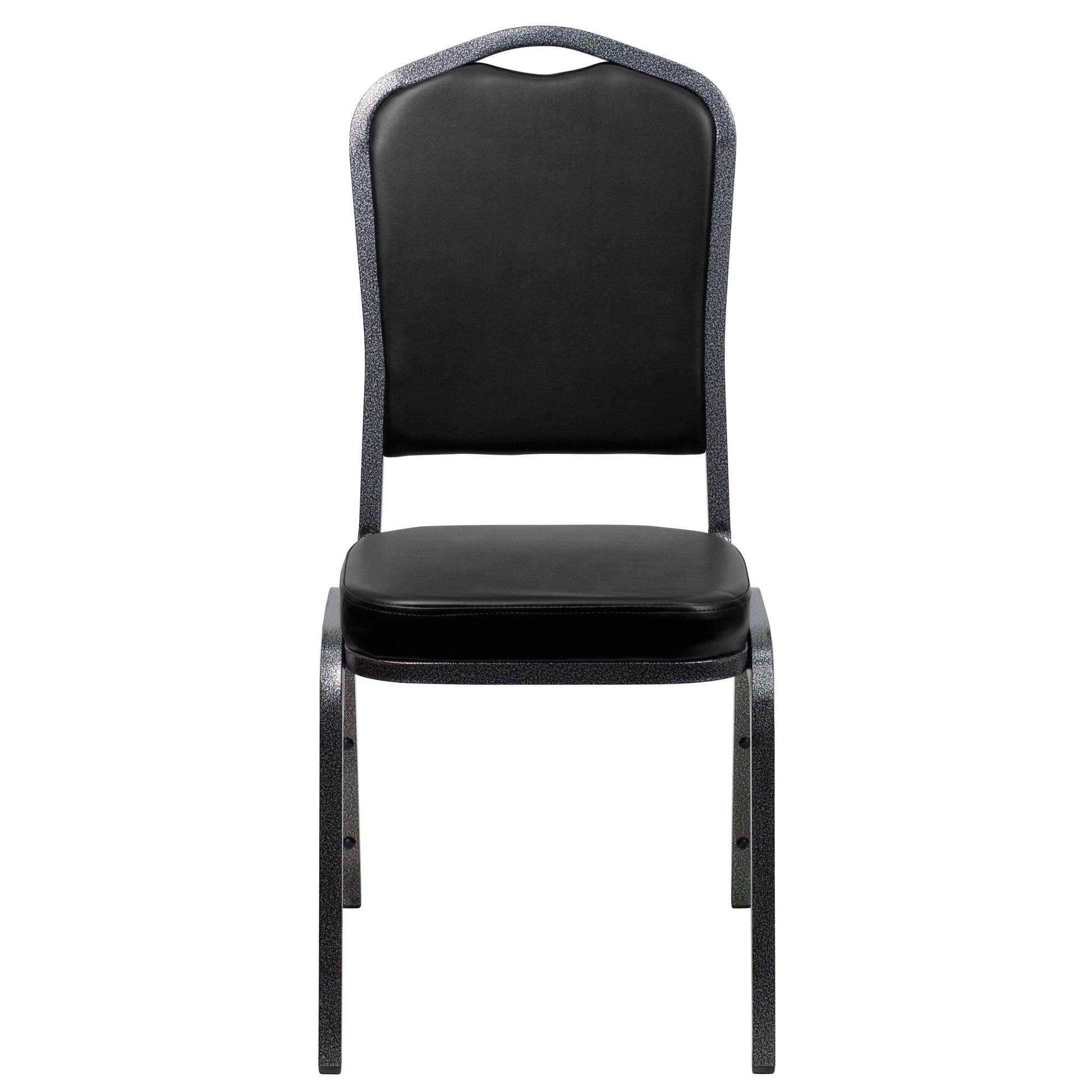 HERCULES Series Crown Back Stacking Banquet Chair in Black Vinyl - Silver Vein Frame Dimensions: 17.25"W x 20.25"D x 38"H