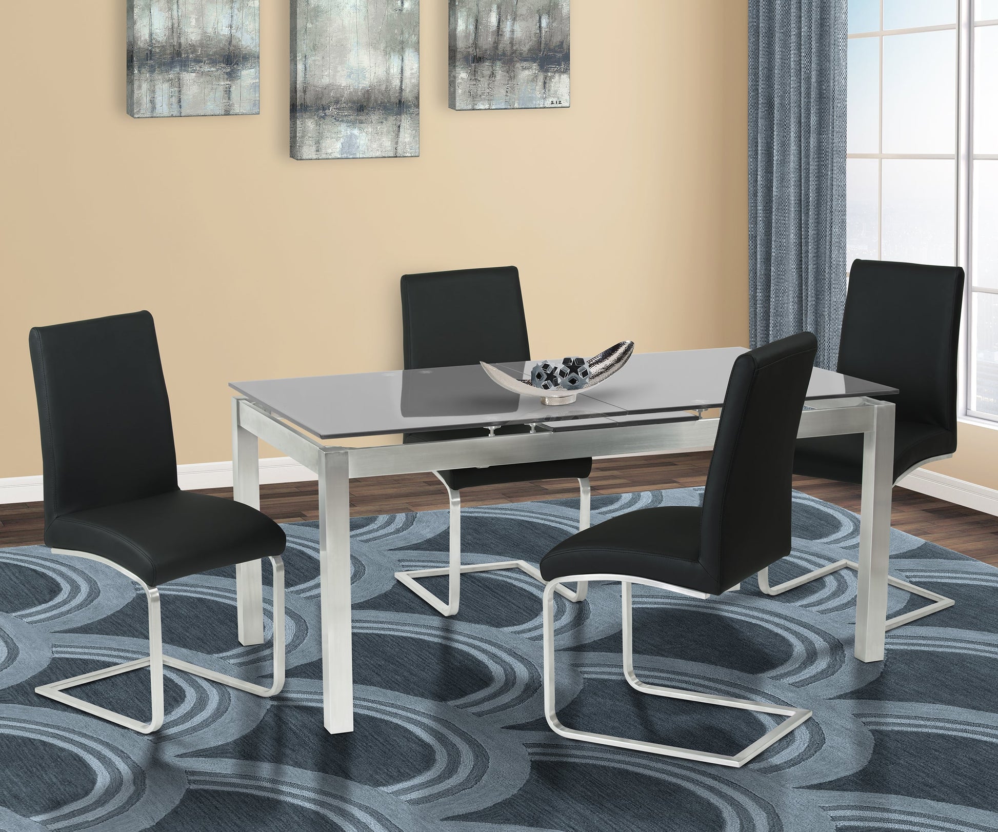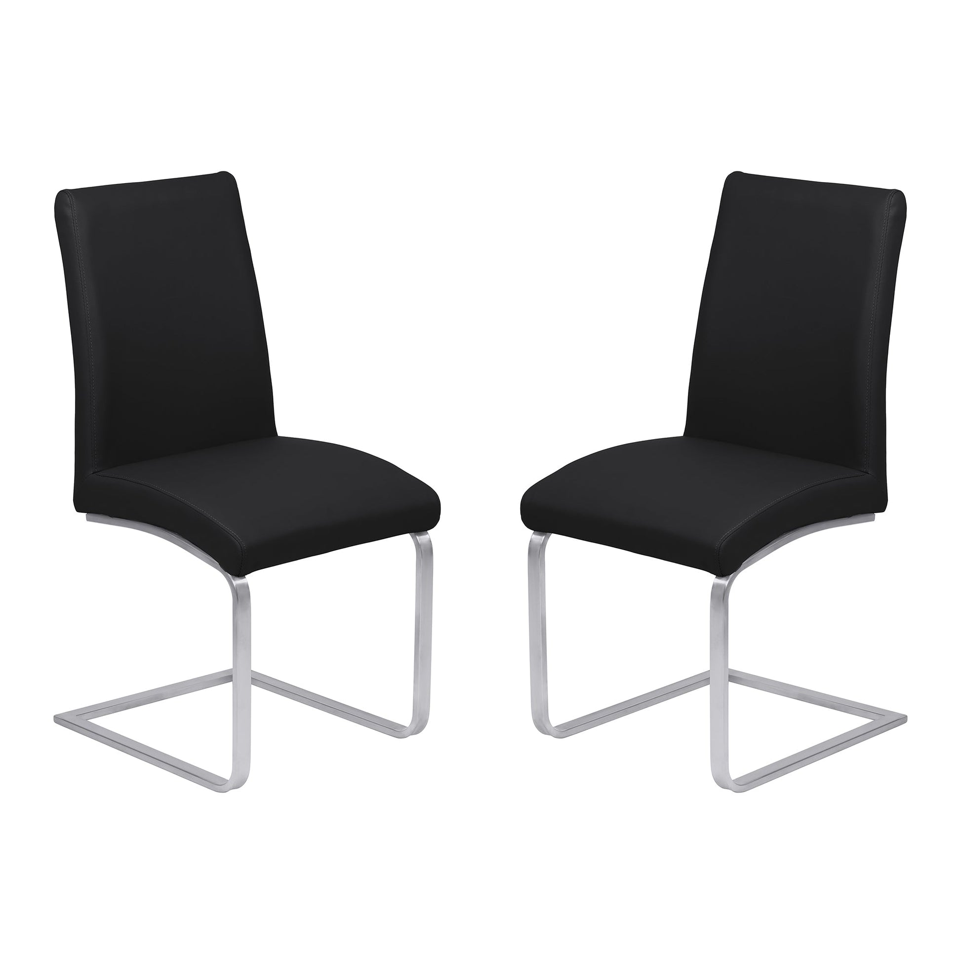 Blanca Contemporary Dining Chair in Black Faux Leather with Brushed Stainless Steel Finish - Set of 2