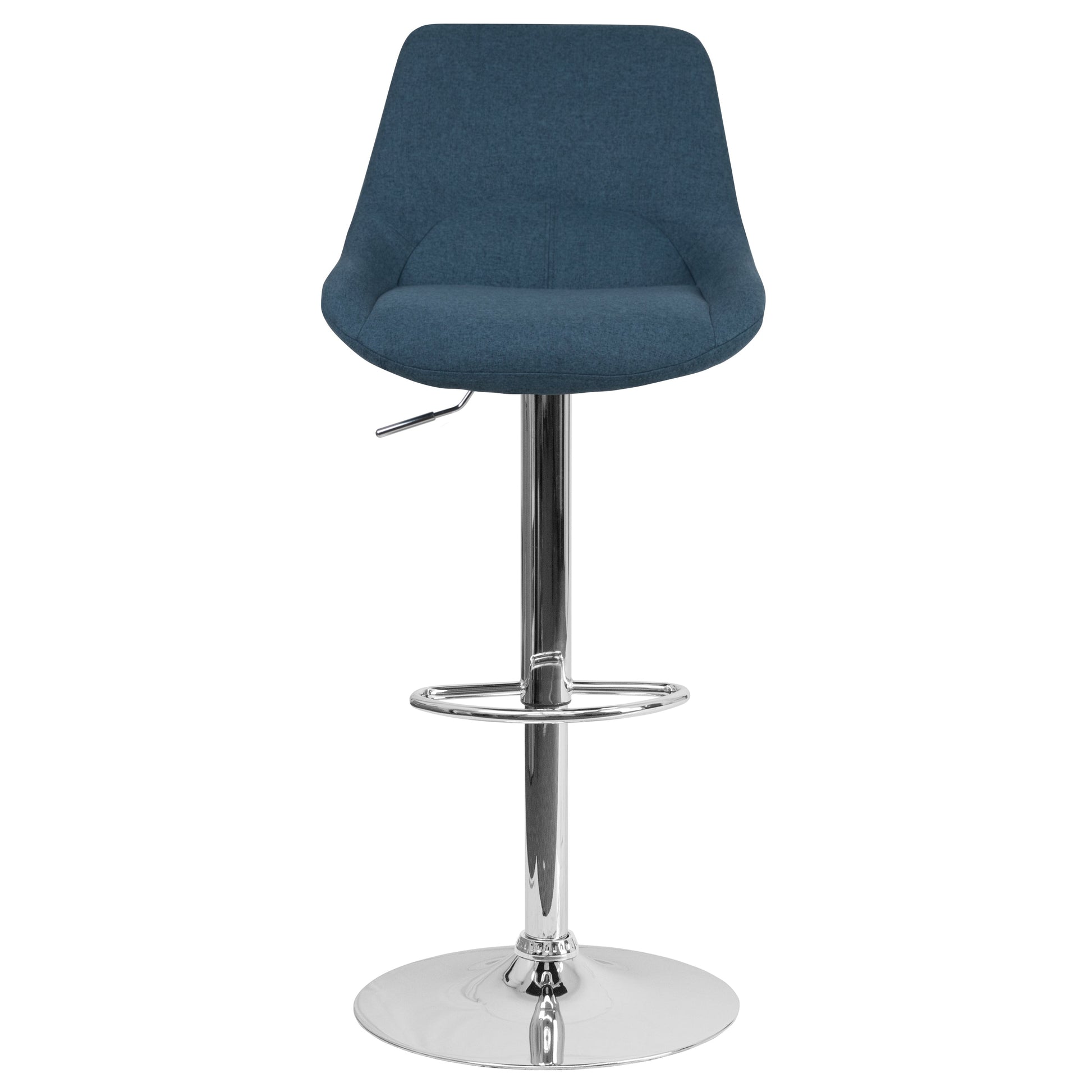 Elijah Contemporary Blue Fabric Adjustable Height Barstool with Chrome Base Dimensions: 19"W x 22.5"D x 36.5" - 44.5"H