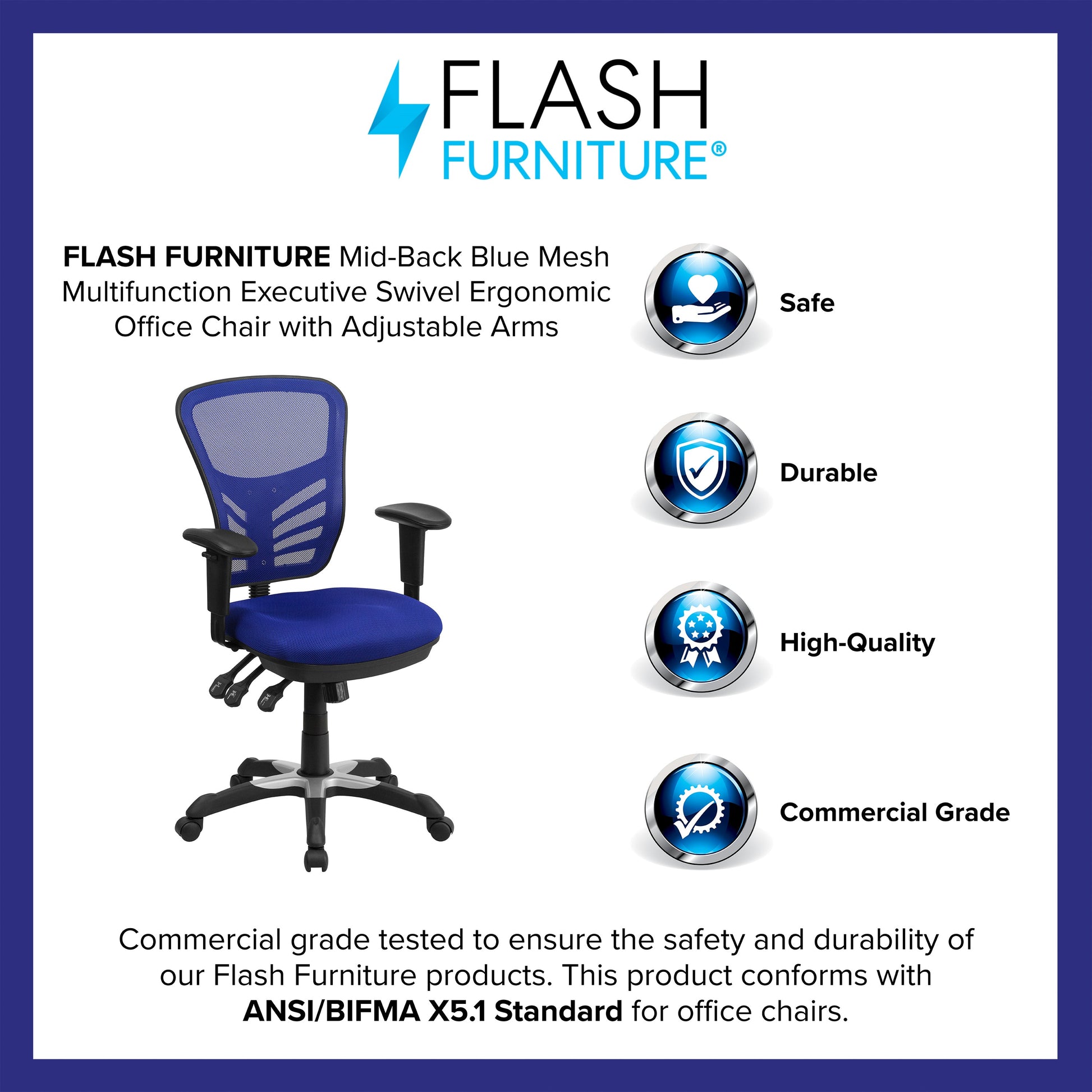 Nicholas Mid-Back Blue Mesh Multifunction Executive Swivel Ergonomic Office Chair with Adjustable Arms Dimensions: 25.5"W x 24.5" - 27"D x 37" - 44.25"H