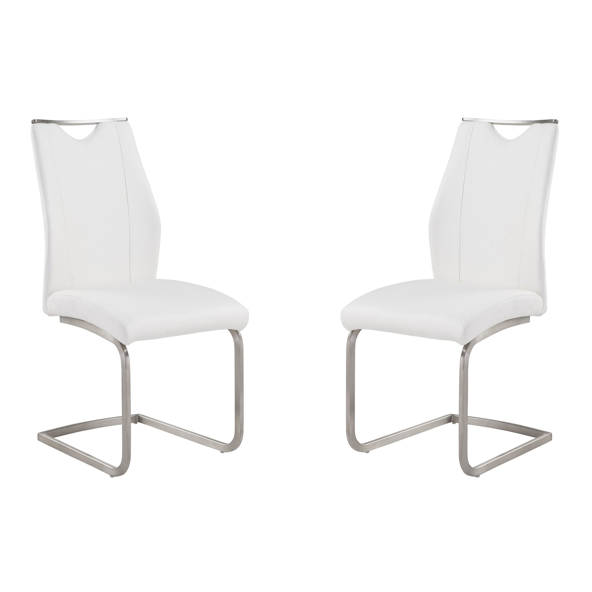 Bravo Contemporary Dining Chair In White Faux Leather and Brushed Stainless Steel Finish - Set of 2