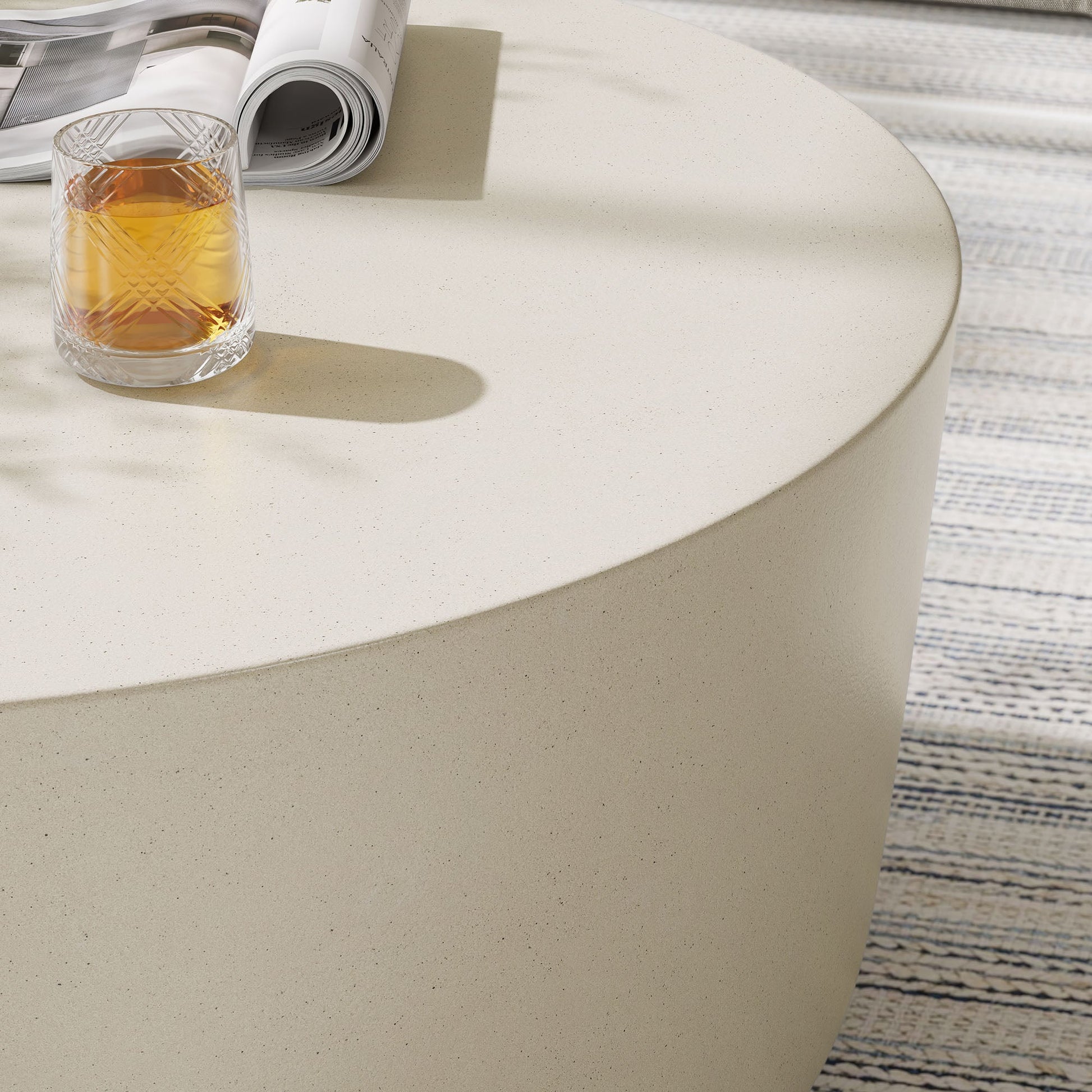 Bold yet refined, this round concrete coffee table offers a striking blend of modern minimalism and functional design. With its sleek, smooth finish and tapered cylinder shape, this captivating drum coffee table creates a stunning focal point in any living room or outdoor patio. Whether utilized as an indoor or outdoor table, or as a low coffee table for small spaces, its solid construction ensures both durability and visual appeal. The broad, circular top provides ample space for drinks, decor, or even as a large plant stand accent table.