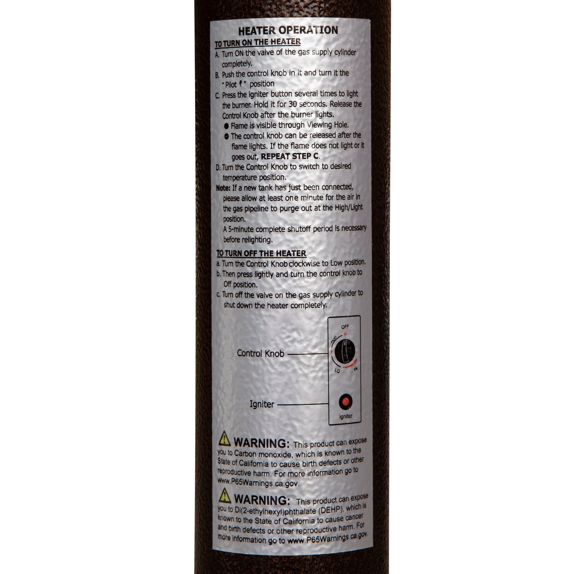 Sol Patio Outdoor Heating-Bronze Stainless Steel 40,000 BTU Propane Heater with Wheels-Commercial & Residential Use-7.5 Feet Tall Dimensions: 31"W x 18"D x 87"H