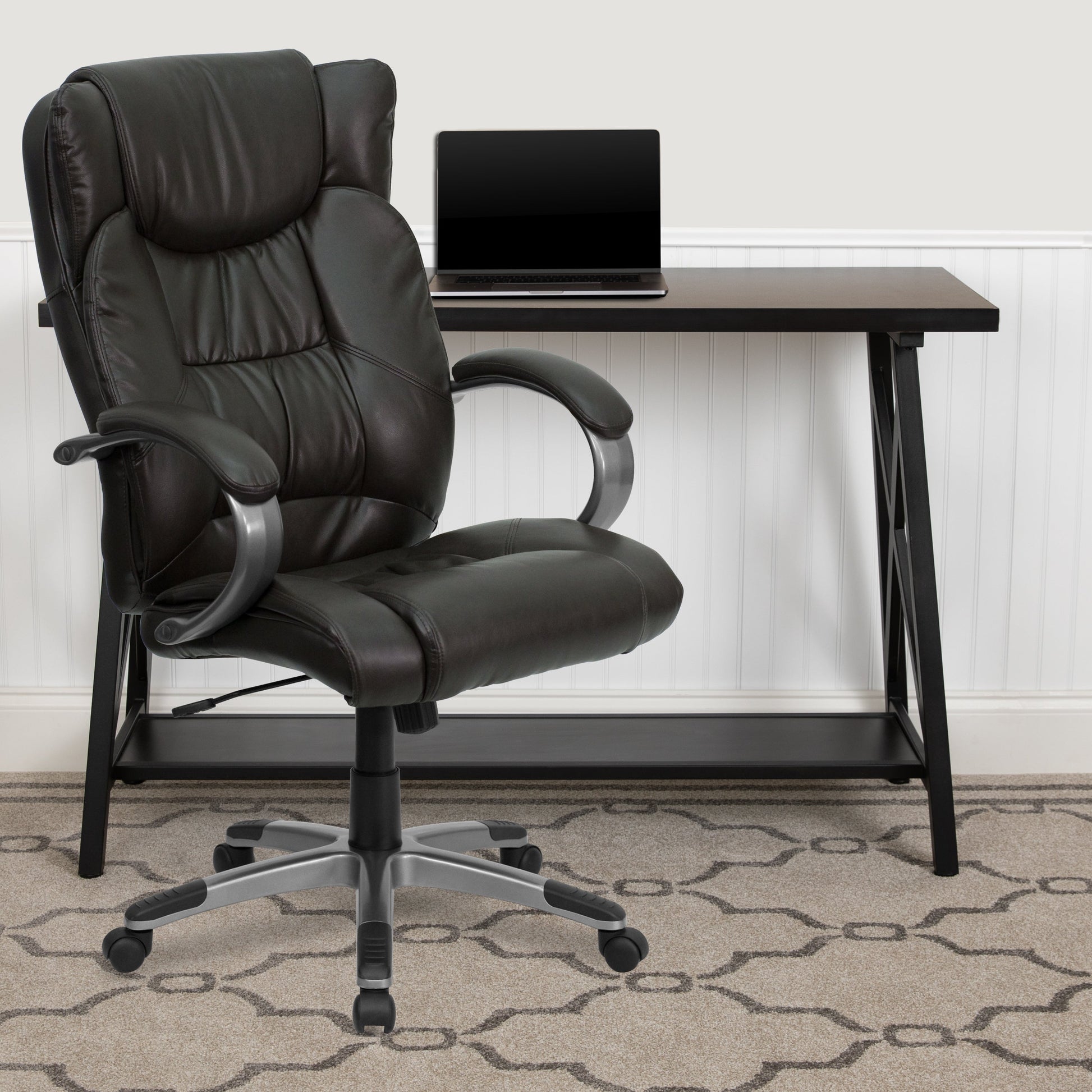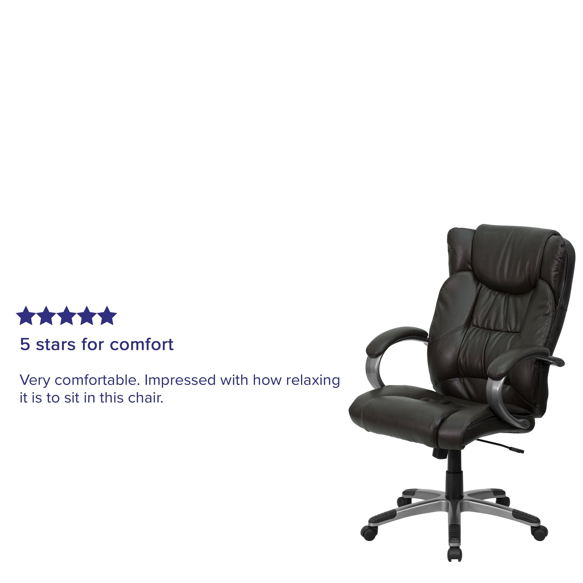 Hansel High Back Espresso Brown LeatherSoft Executive Swivel Office Chair with Titanium Nylon Base and Loop Arms Dimensions: 27"W x 31"D x 44.5" - 48.25"H